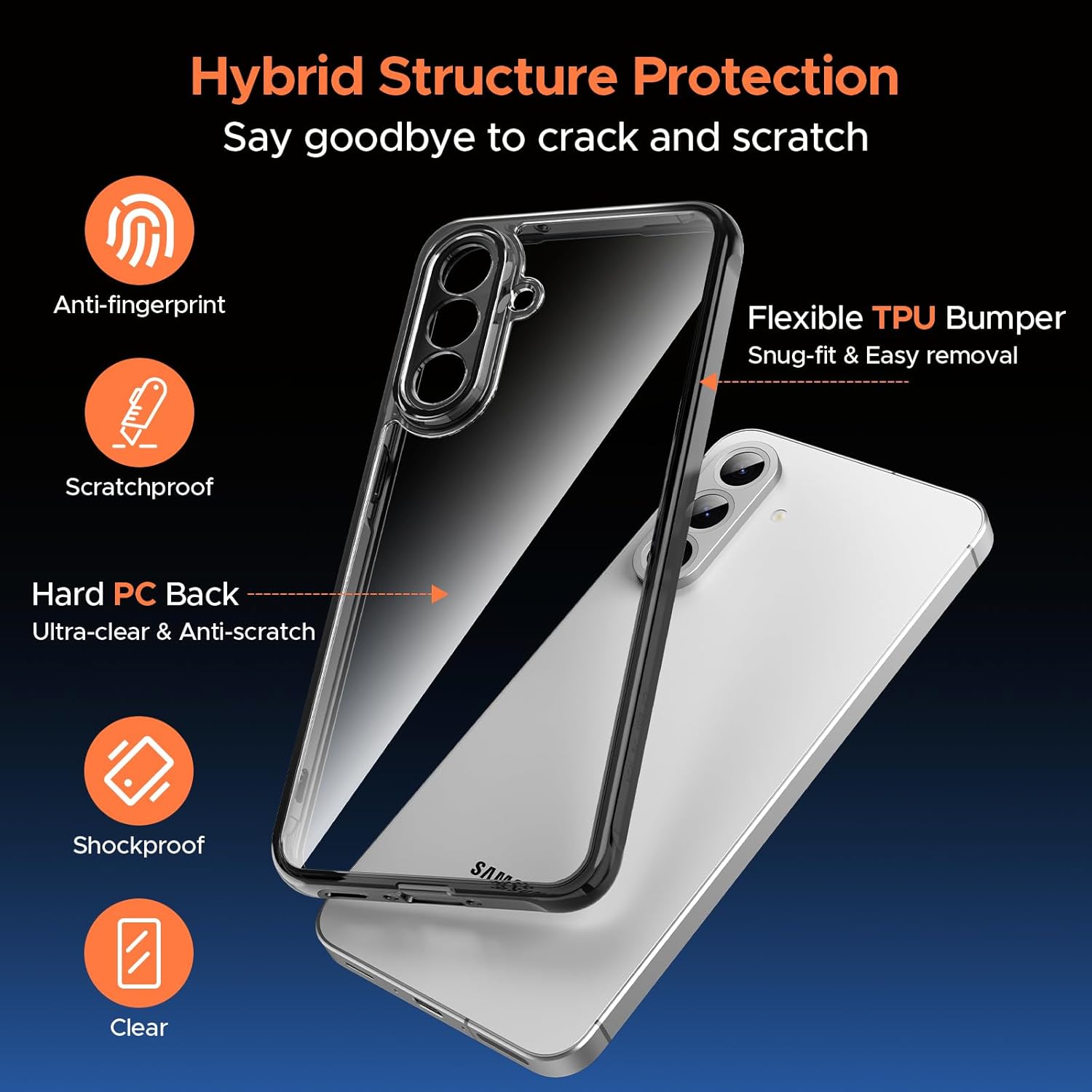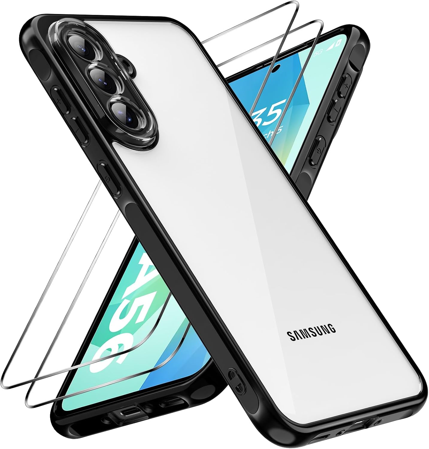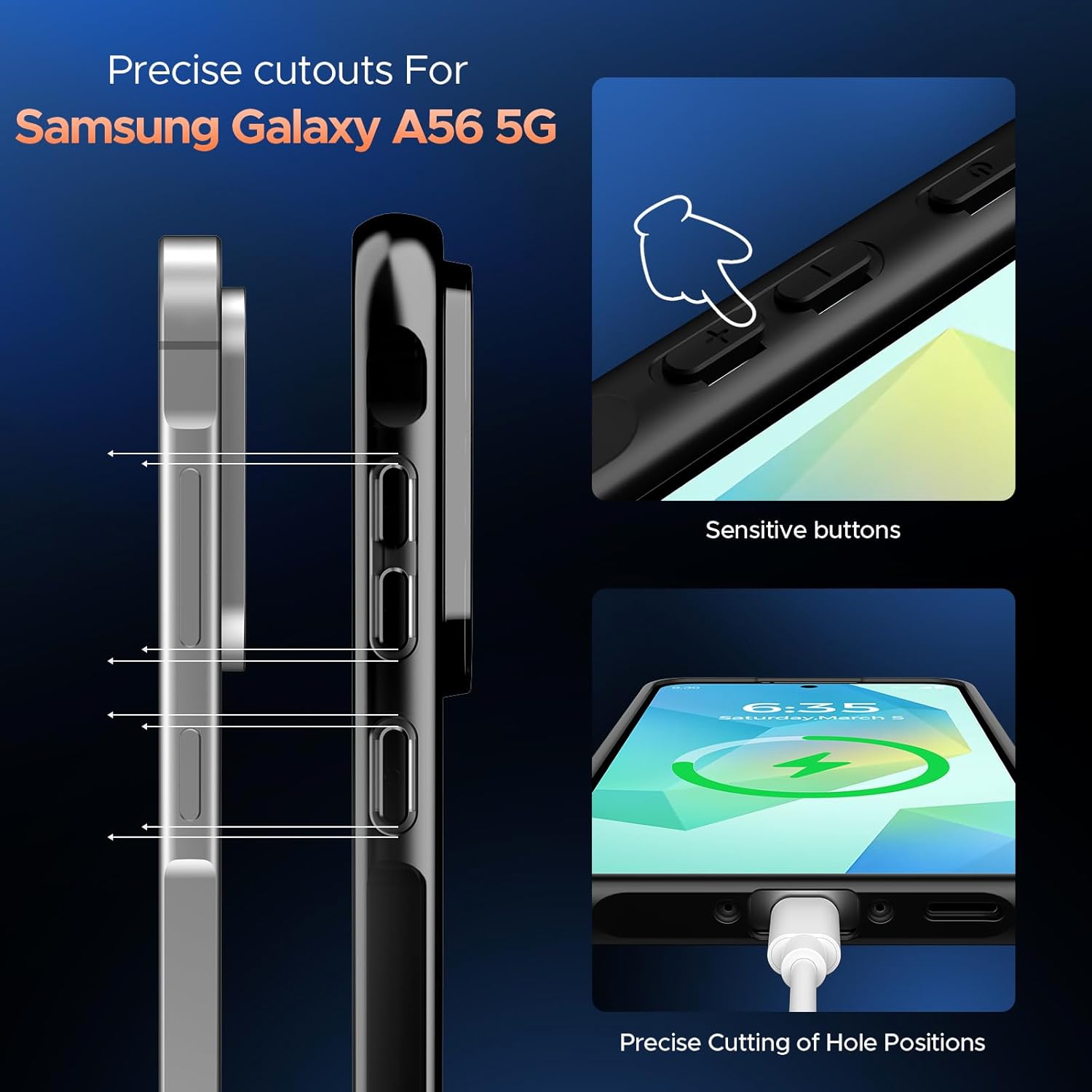 Кейс за Samsung Galaxy A56 5G с 2 части закалено стъклено защитно стъкло, [Защита на камерата] [Удароустойчив] Калъф за мобилен телефон, Черна TPU рамка + Прозрачен PC гръб, Против пръстови отпечатъци