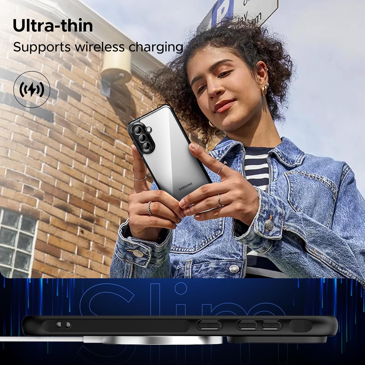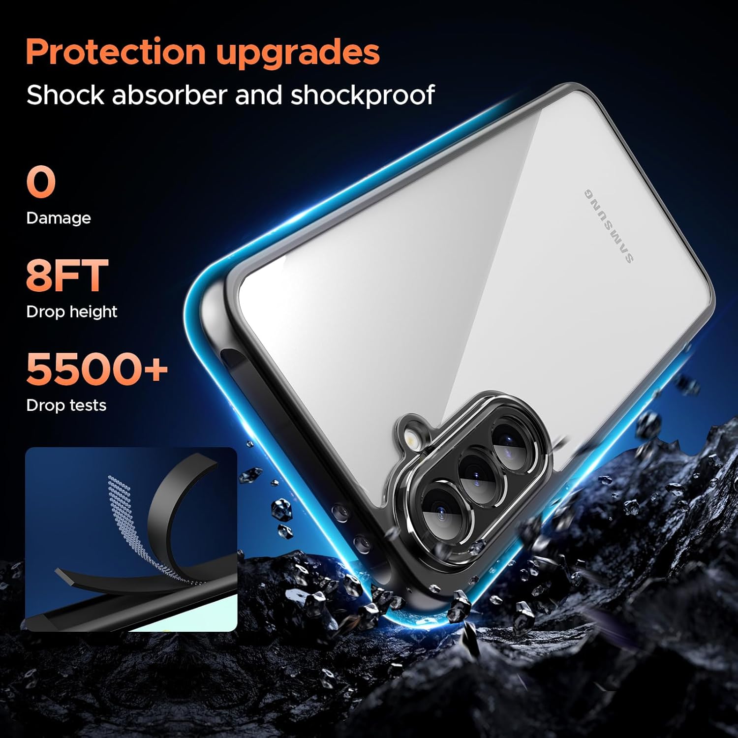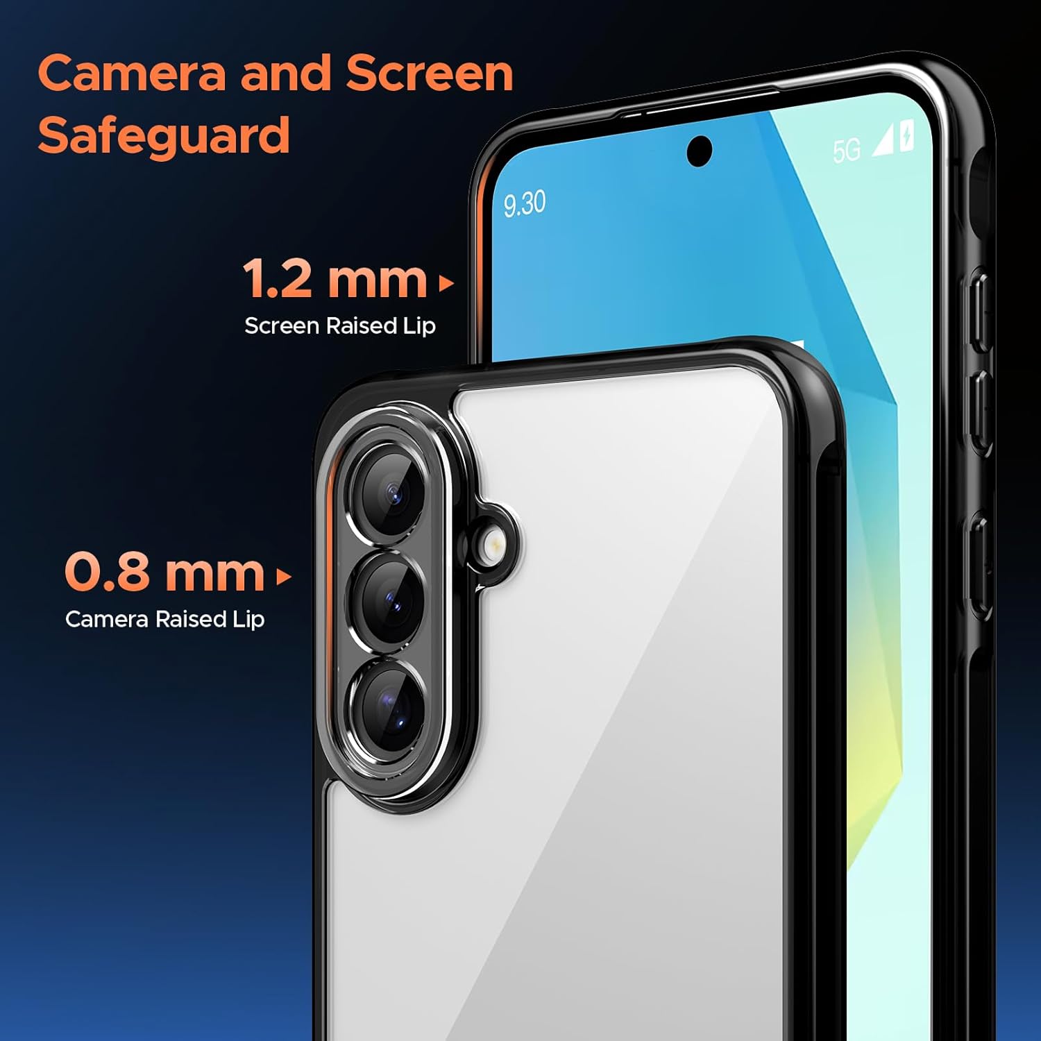 Кейс за Samsung Galaxy A56 5G с 2 части закалено стъклено защитно стъкло, [Защита на камерата] [Удароустойчив] Калъф за мобилен телефон, Черна TPU рамка + Прозрачен PC гръб, Против пръстови отпечатъци