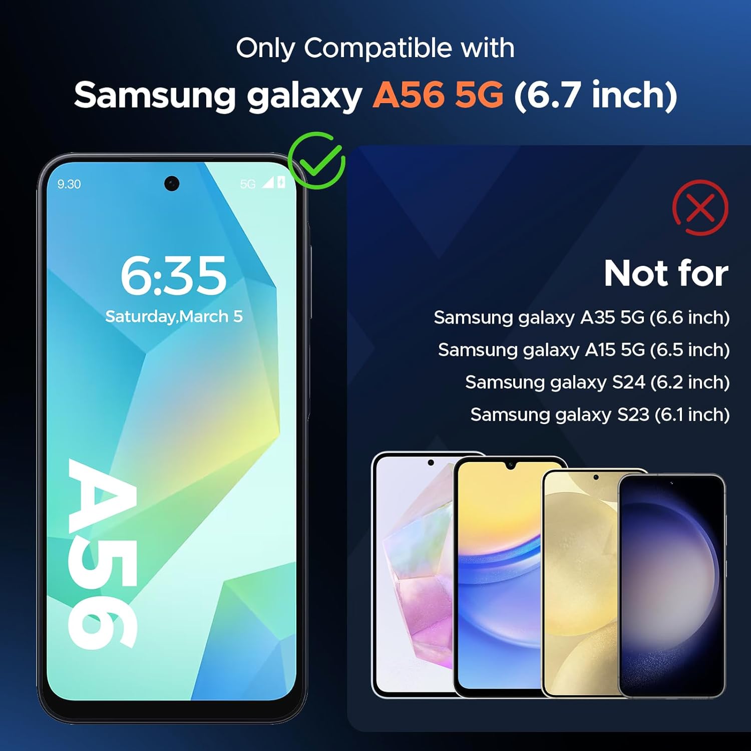 • Съвместим със Samsung Galaxy A56: Този прозрачен калъф с 3 протектора от закалено стъкло за екрана е съвместим със Samsung Galaxy A56, който подчертава оригиналната линия и оригиналния дизайн на вашия телефон. Моля, потвърдете модела на телефона преди покупка. Прозрачният калъф ви позволява да се насладите на оригиналната красота на вашето устройство.