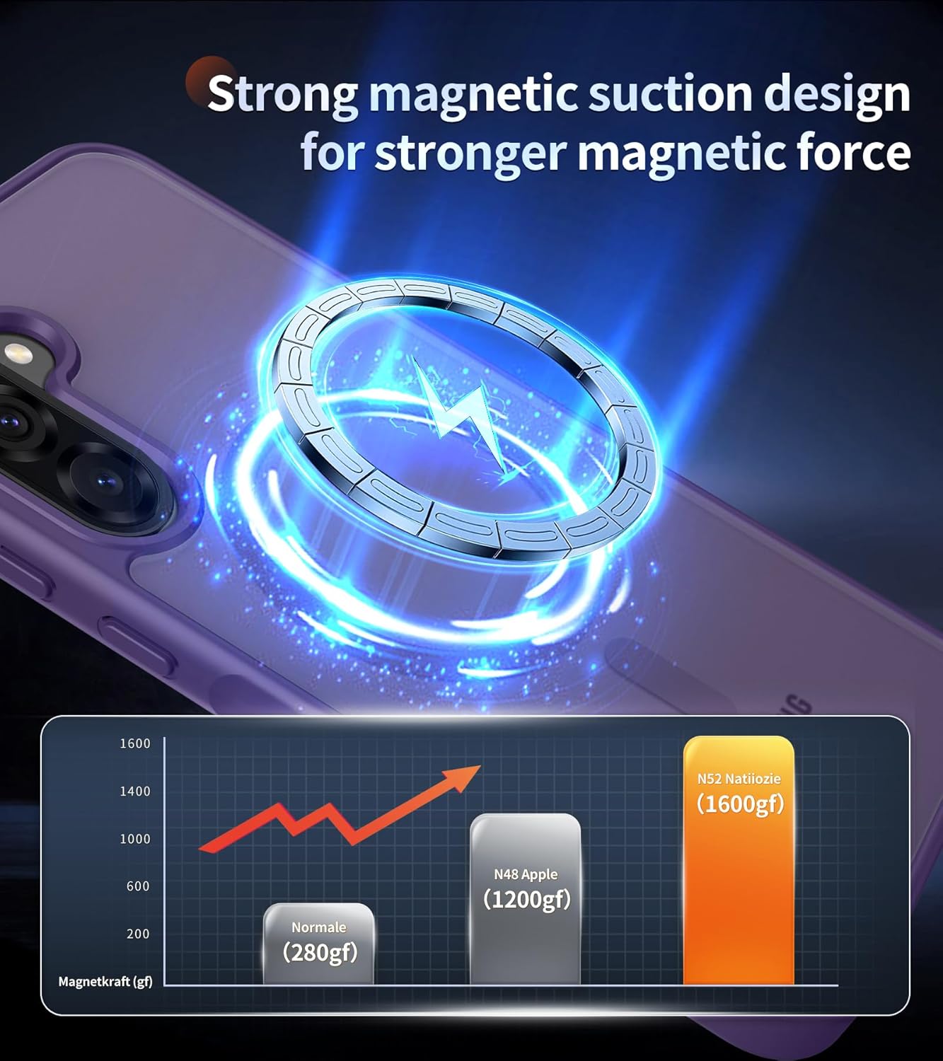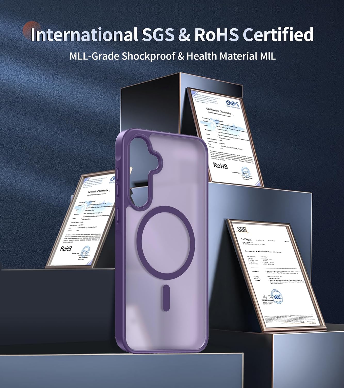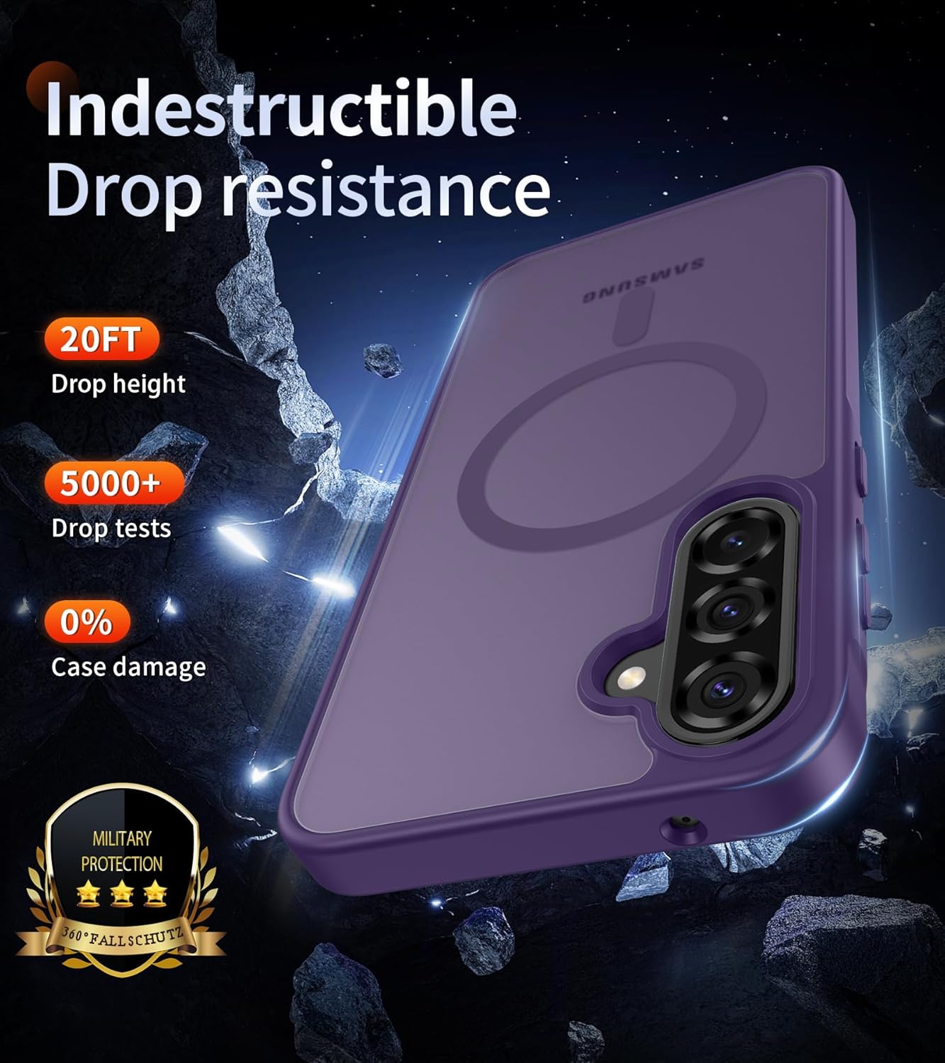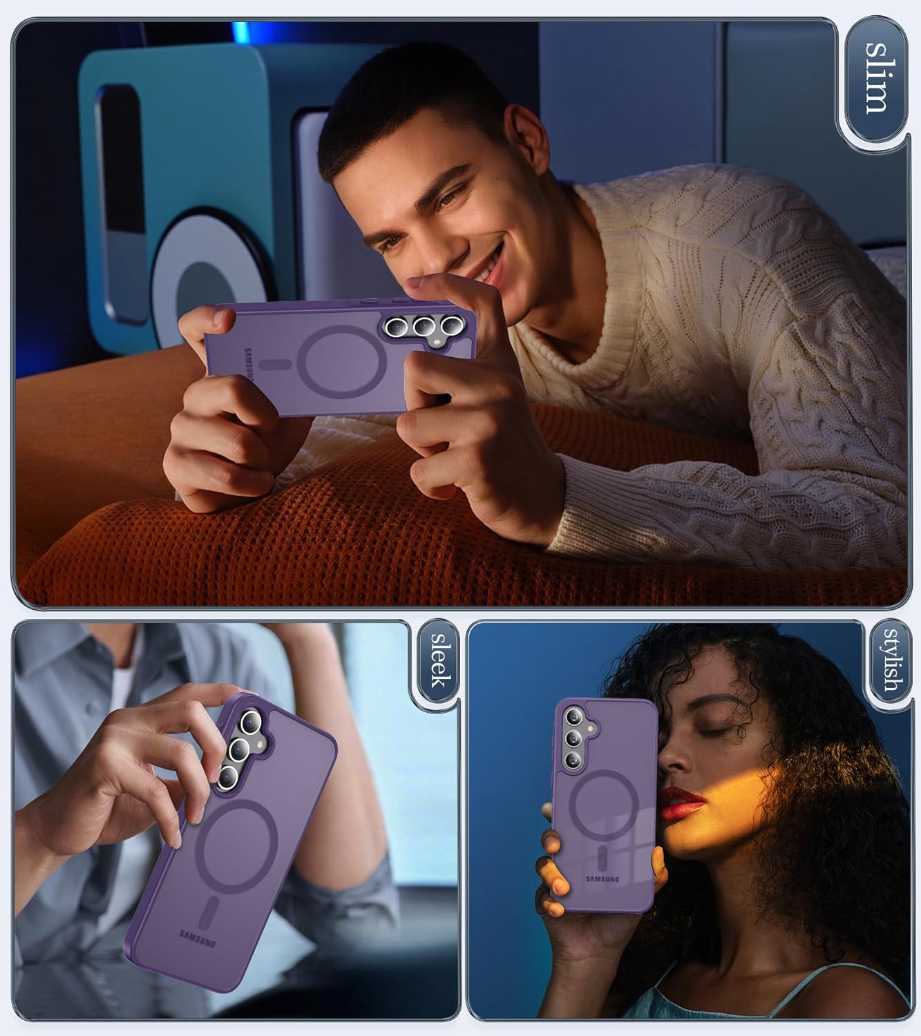 Кейс за Samsung Galaxy A56 5G, съвместим с MagSafe с 2 протектора за екран, военен стандарт за защита, калъф за мобилен телефон, удароустойчив, прозрачен матов защитен калъф, тъмно лилав