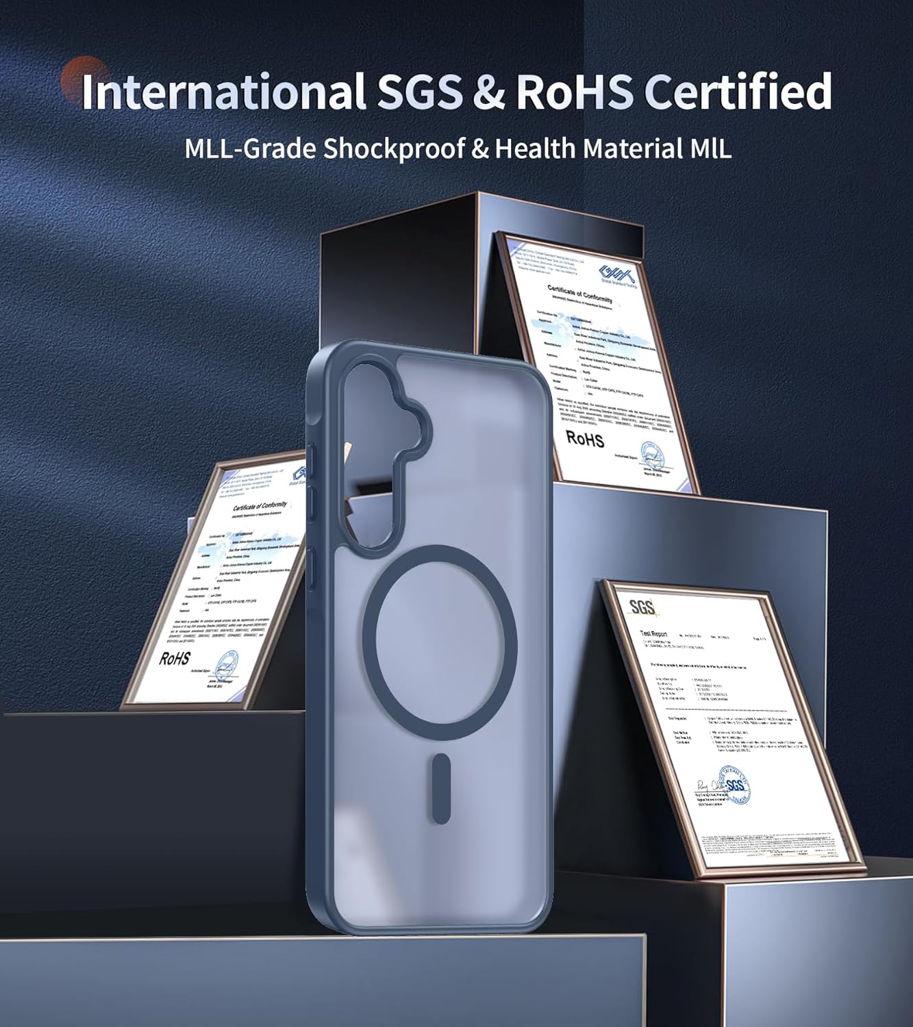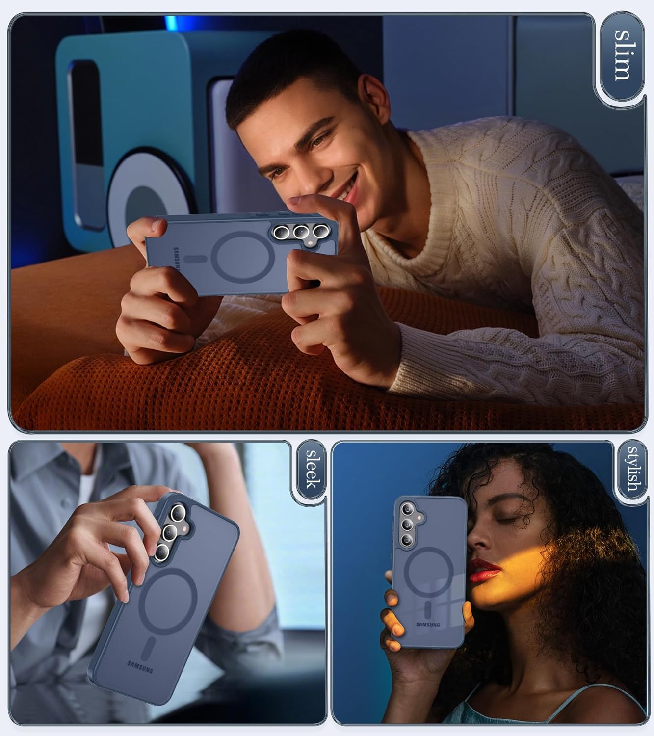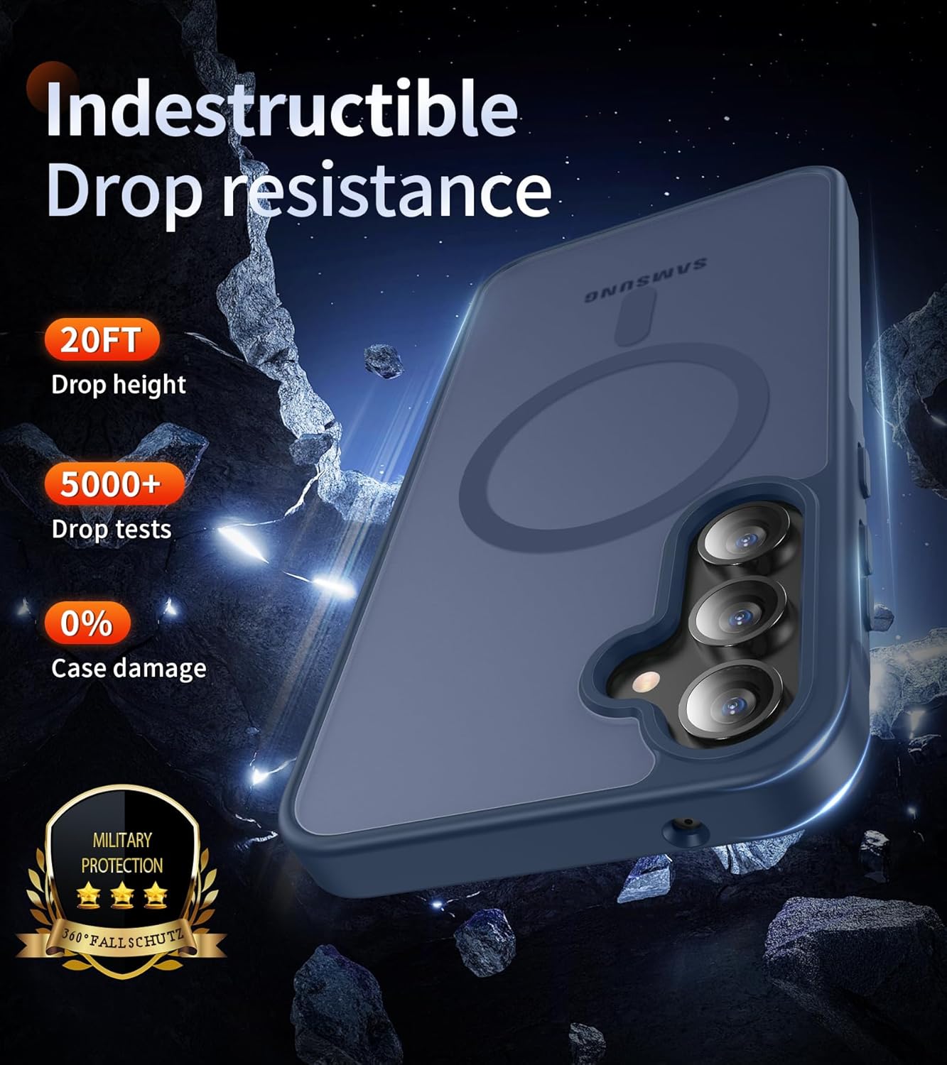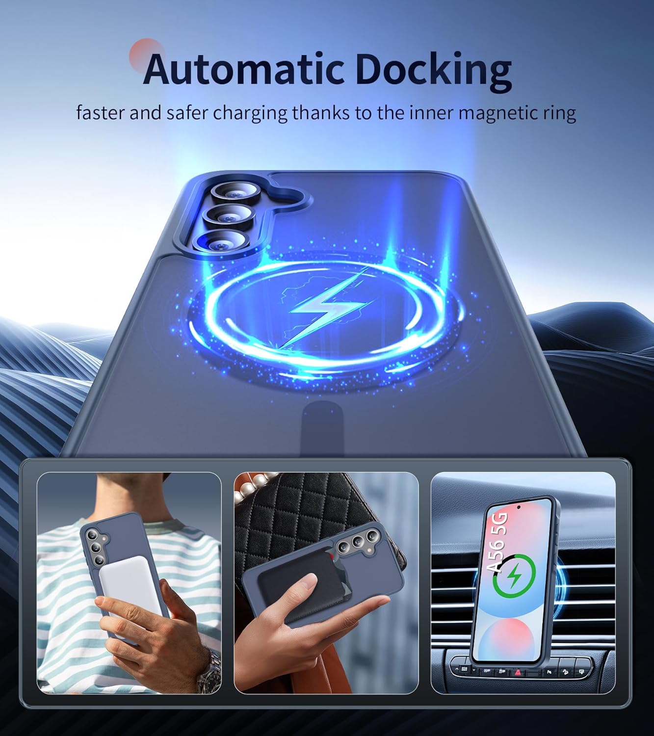 Кейс за Samsung Galaxy A56 5G, съвместим с MagSafe с 2 протектора за екран, военна стандартна защита, калъф за мобилен телефон, удароустойчив, прозрачен матов защитен калъф, тъмносин