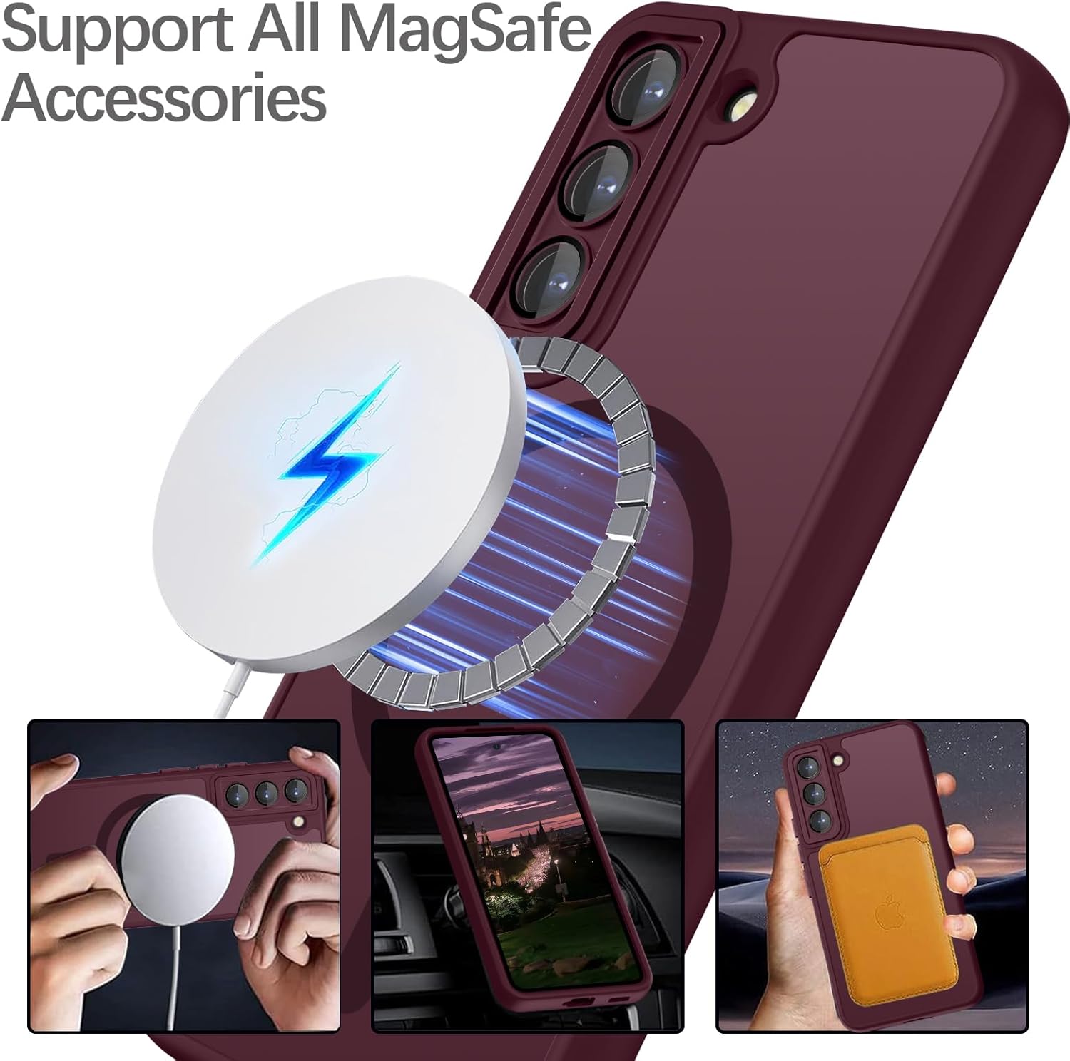 • Този калъф за мобилен телефон за Samsung Galaxy S24 е съвместим с магнитни аксесоари. С вграден магнитен пръстен, осигурява стабилно закрепване и по-бързо безжично зареждане.
