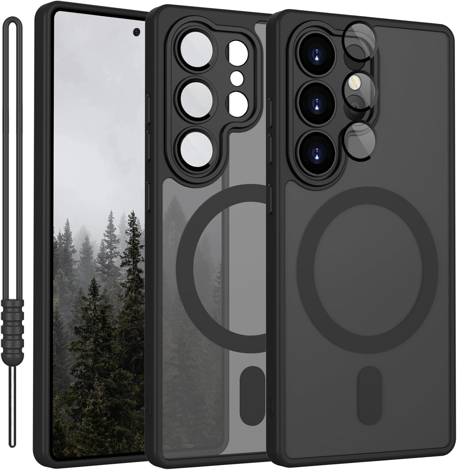 Кейс за Samsung Galaxy S22 Ultra, съвместим с MagSafe, Калъф за мобилен телефон за Samsung Galaxy S22 Ultra, магнитен, матов, със сензорен екран, защита на камерата, неплъзгащ се, устойчив на надраскване, удароустойчив калъф.