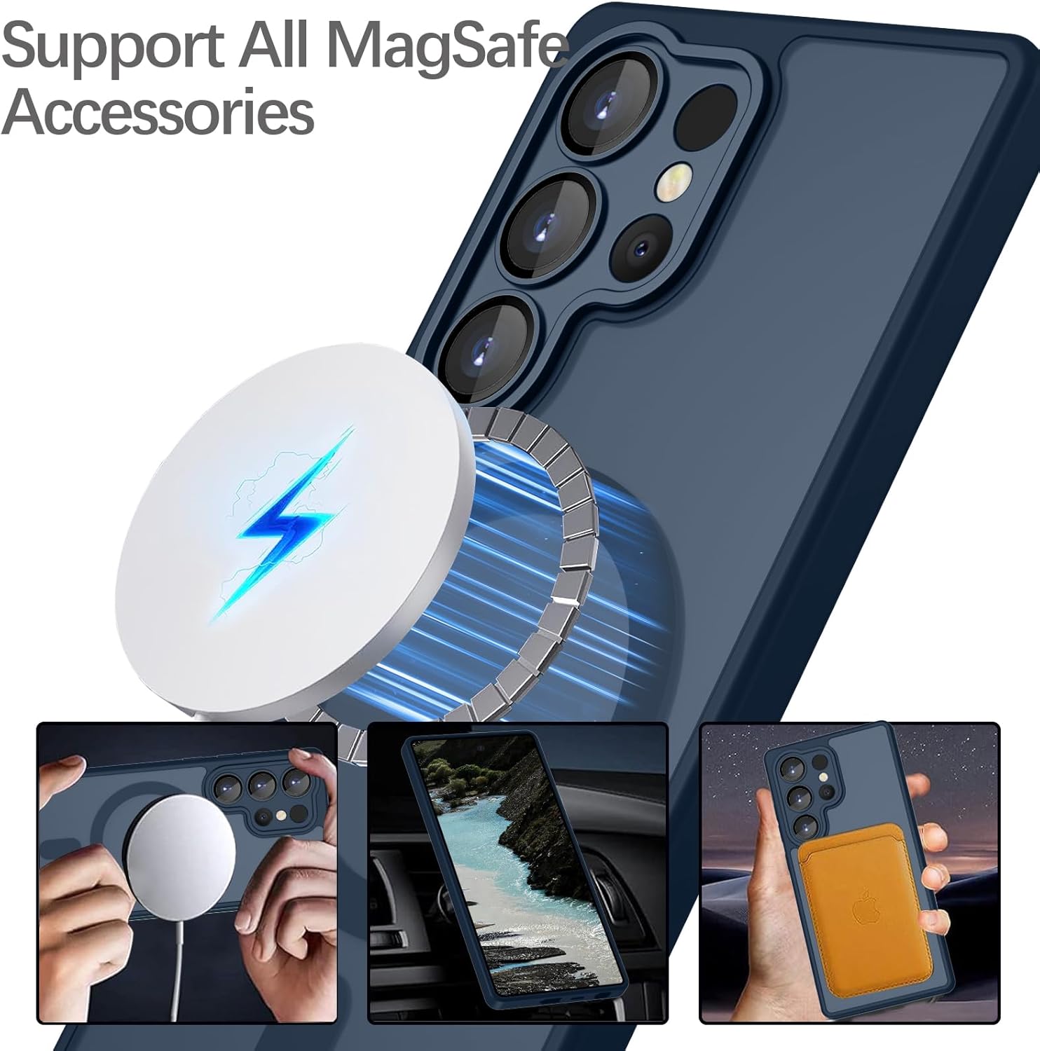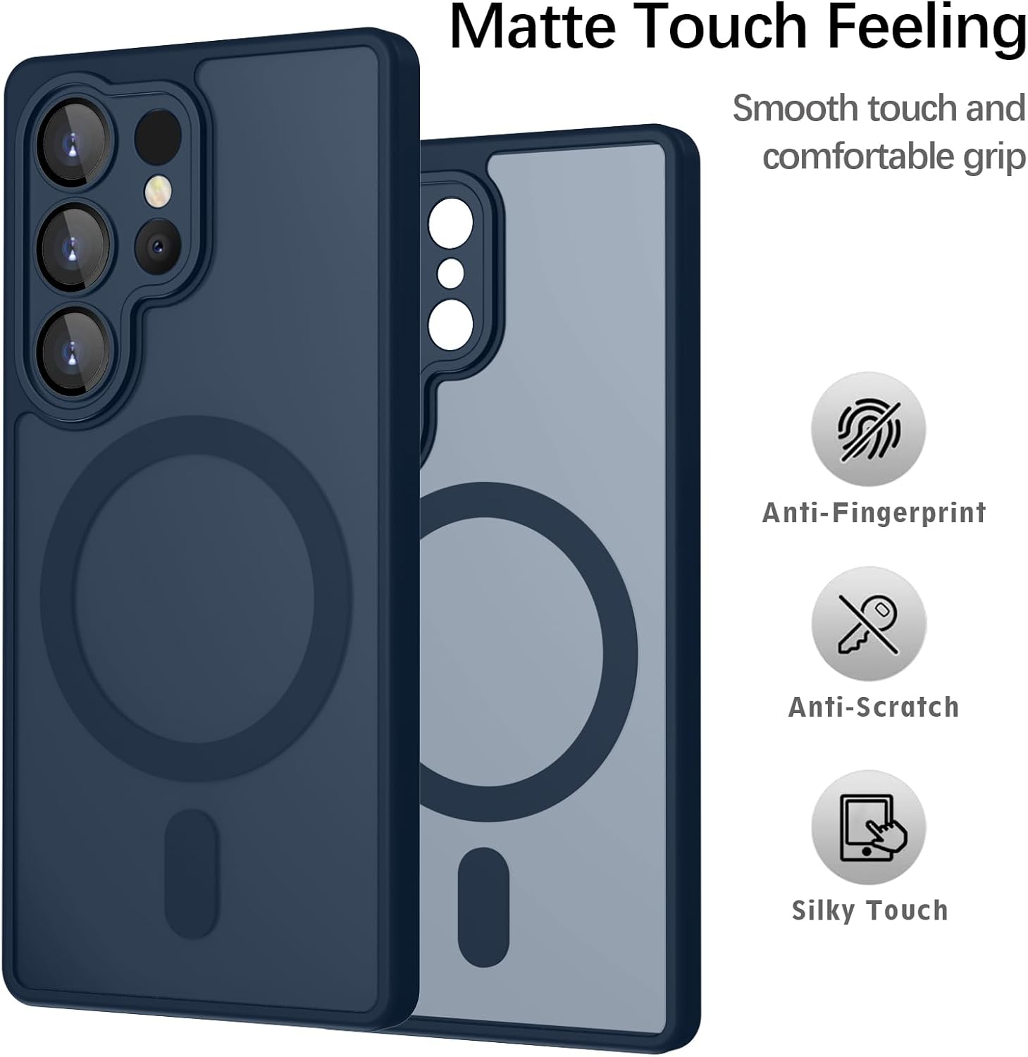 Кейс за Samsung Galaxy S22 Ultra, съвместим с MagSafe, Калъф за мобилен телефон за Samsung Galaxy S22 Ultra, магнитен, матов, със сензорен екран, защита на камерата, неплъзгащ се, устойчив на надраскване, удароустойчив калъф.