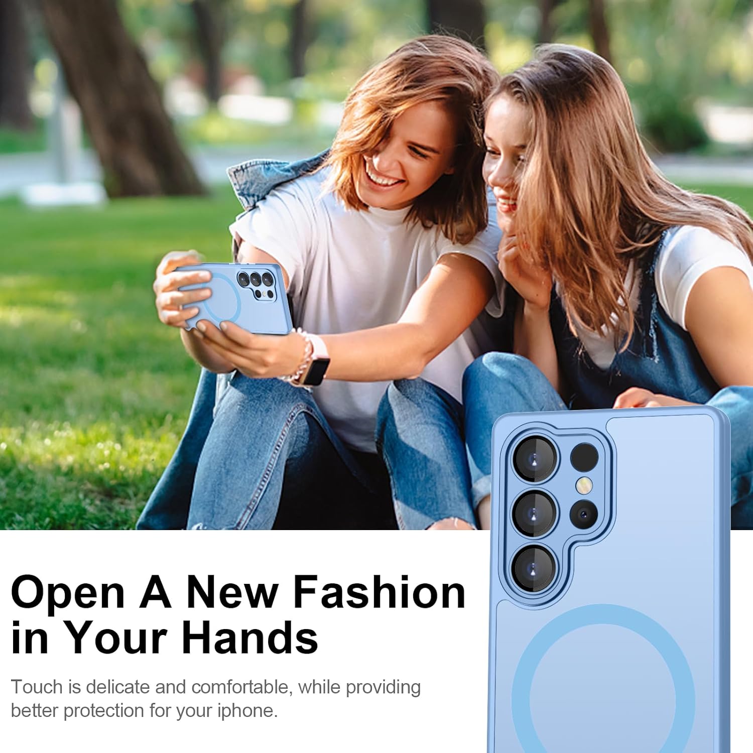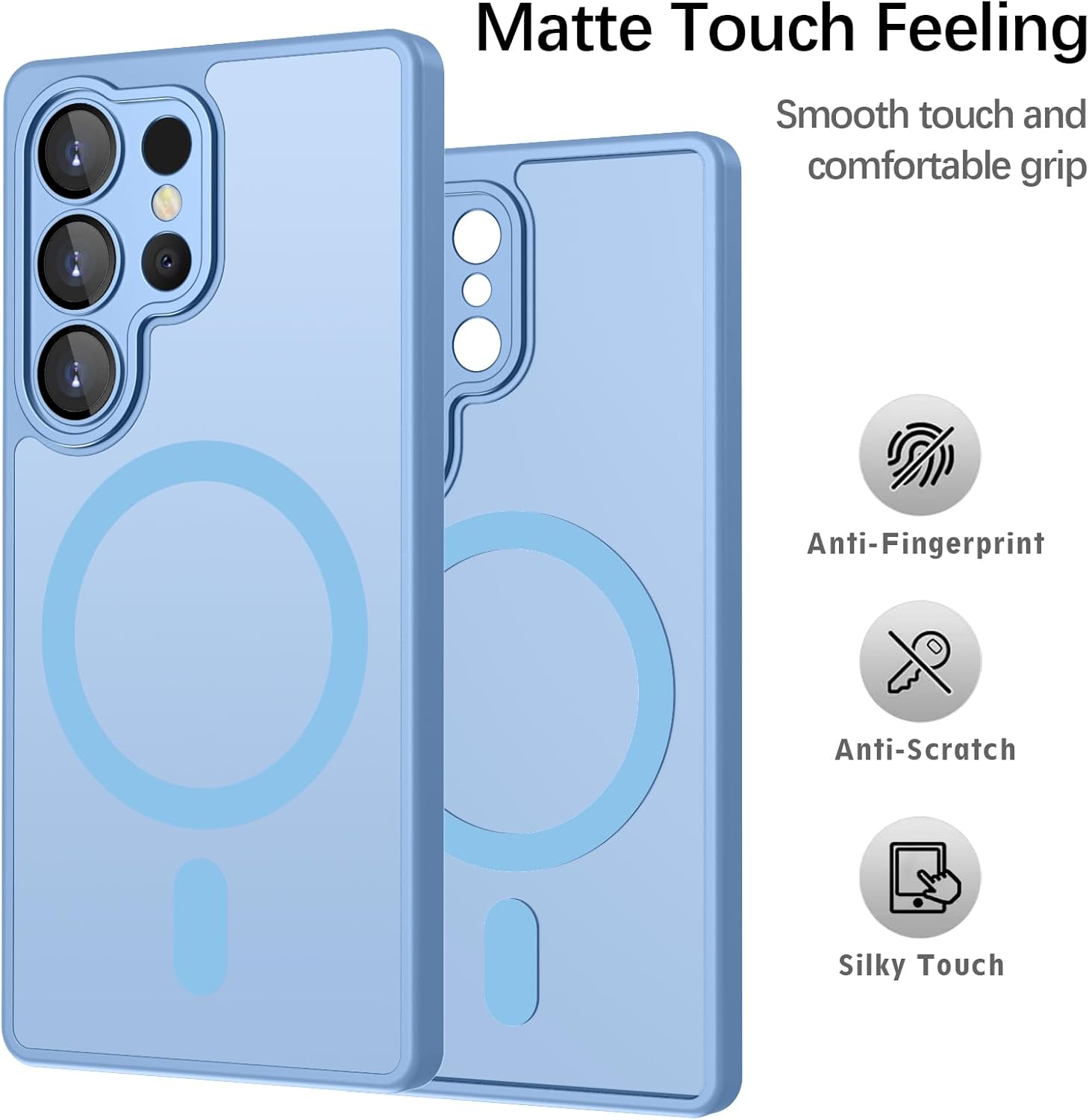 Кейс за Samsung Galaxy S22 Ultra, съвместим с MagSafe, Калъф за мобилен телефон за Samsung Galaxy S22 Ultra, магнитен, матов, със сензорен екран, защита на камерата, неплъзгащ се, устойчив на надраскване, удароустойчив калъф.