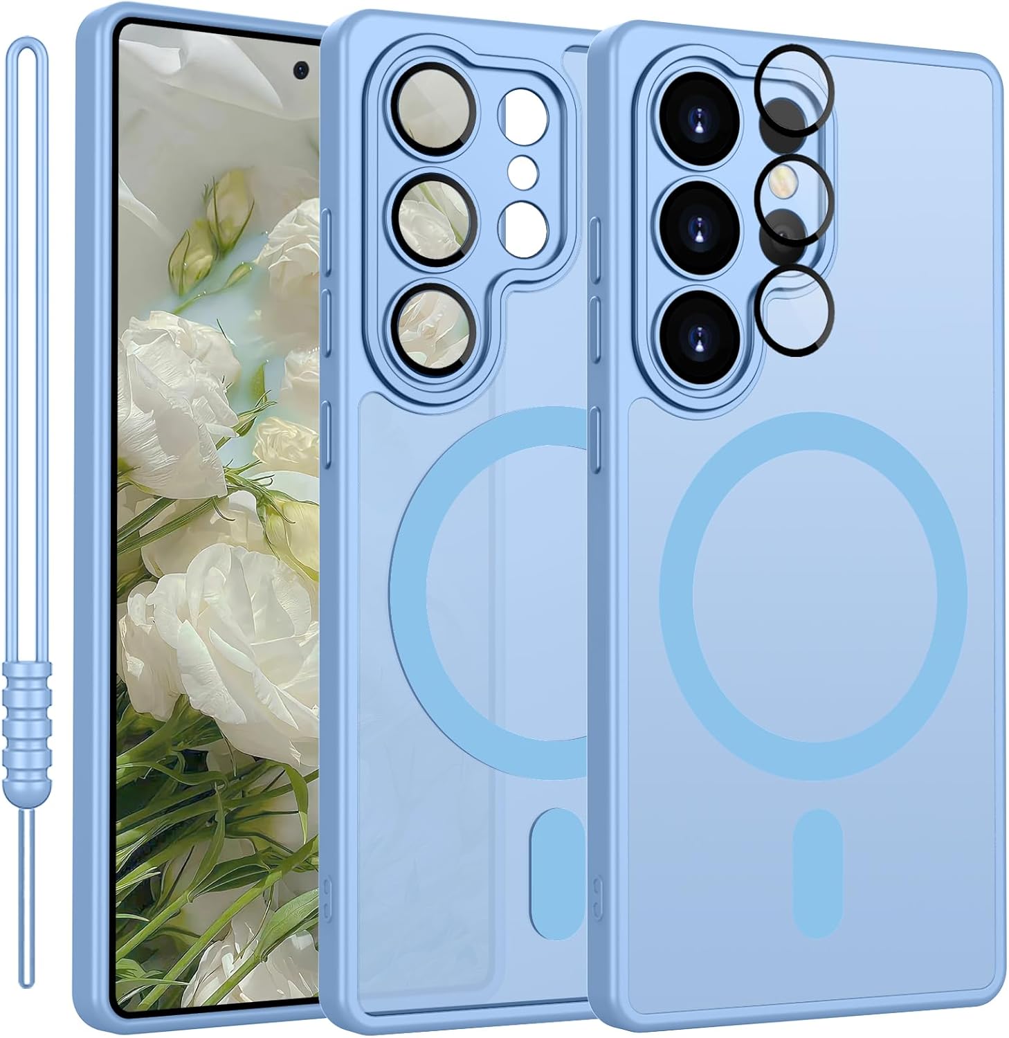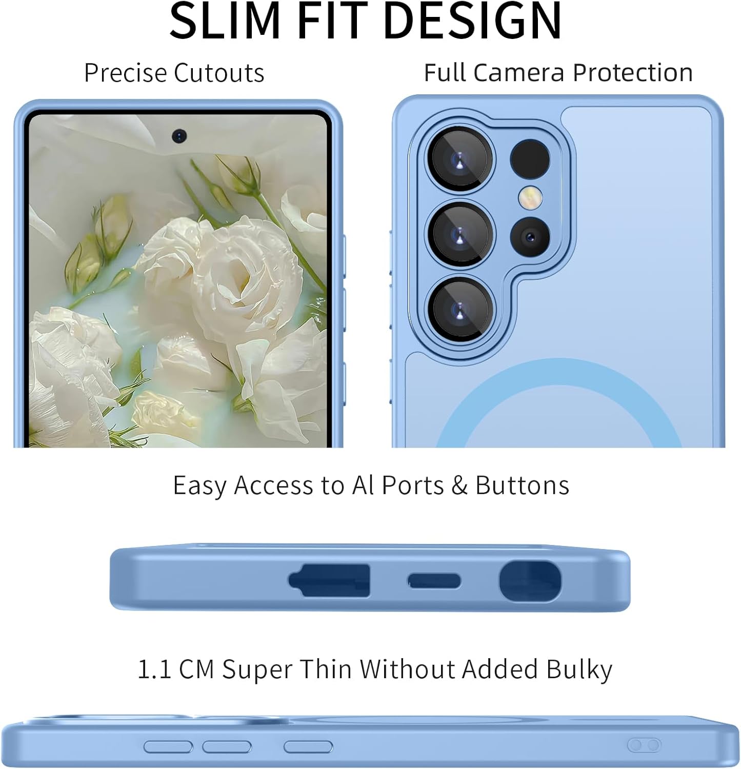 • YUANDMI Тънък магнитен калъф за телефон за Samsung Galaxy S24, не е съвместим с други версии. Поддържа безжично зареждане: