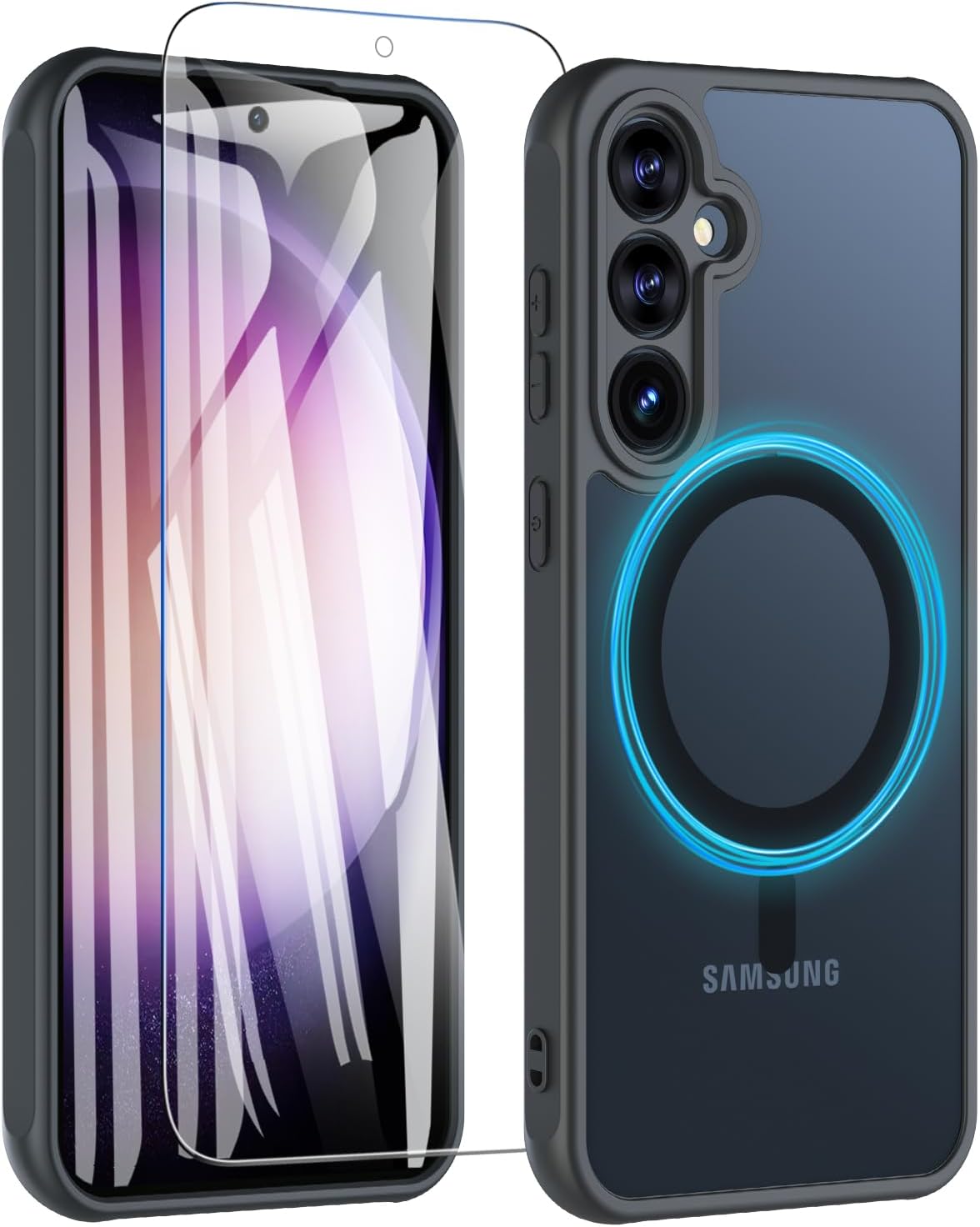 Кейс за Samsung Galaxy S23 FE 5G за Magsafe с бронирано защитно стъкло, [Военен клас защита] Удароустойчив магнитен кейс за мобилен телефон Samsung S23 FE, тънък калъф за външна употреба, защитен кейс.