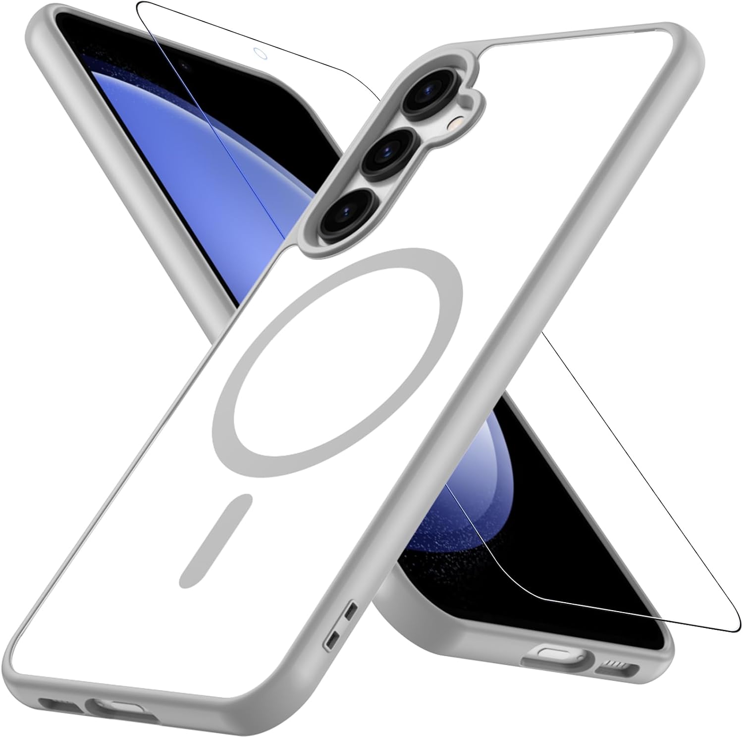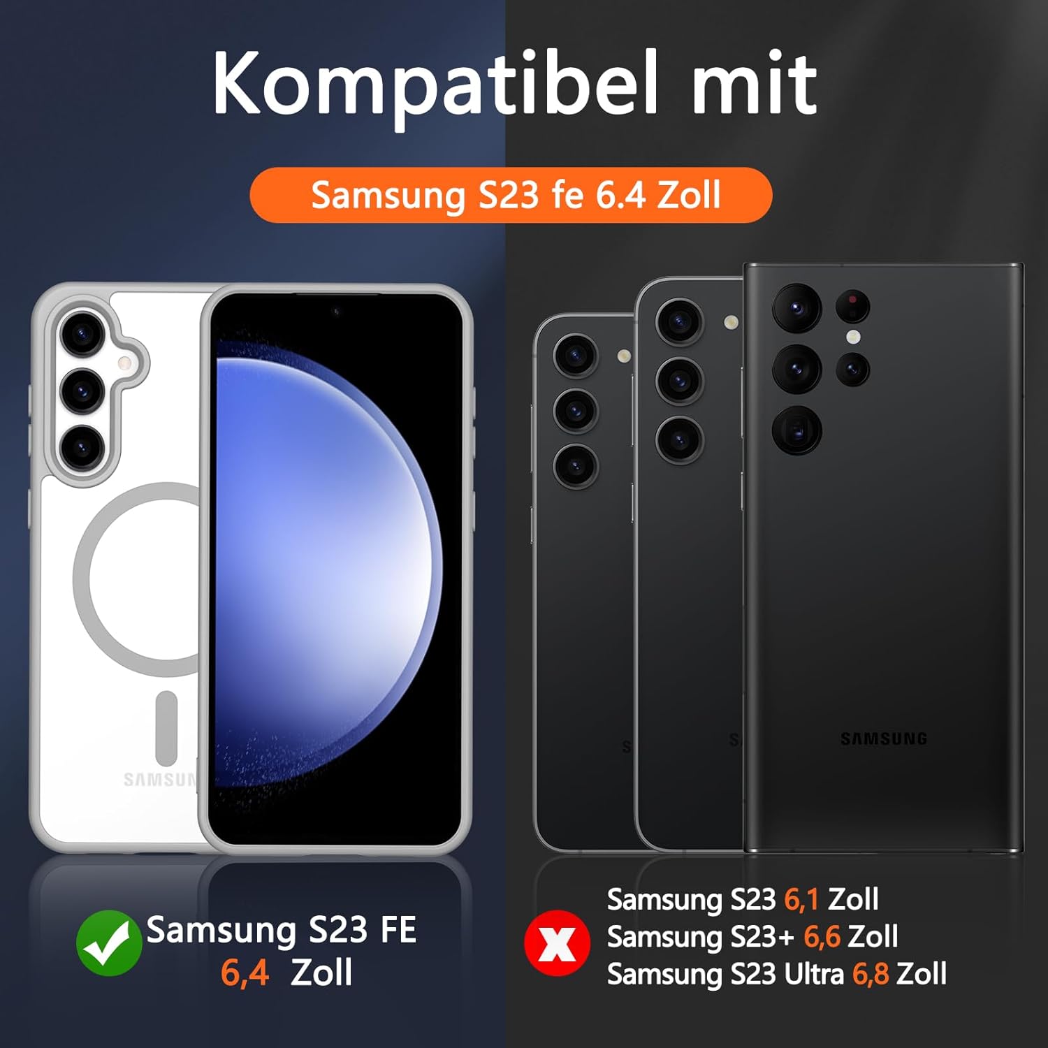 Кейс за Samsung Galaxy S23 FE 5G за Magsafe с бронирано защитно стъкло, [Военен клас защита] Удароустойчив магнитен кейс за мобилен телефон Samsung S23 FE, тънък калъф за външна употреба, защитен кейс.