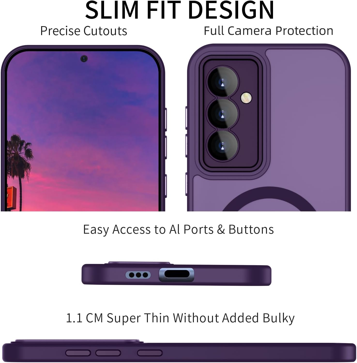 • YUANDMI Тънък магнитен калъф за телефон за Samsung Galaxy S24, не е съвместим с други версии. Поддържа безжично зареждане: