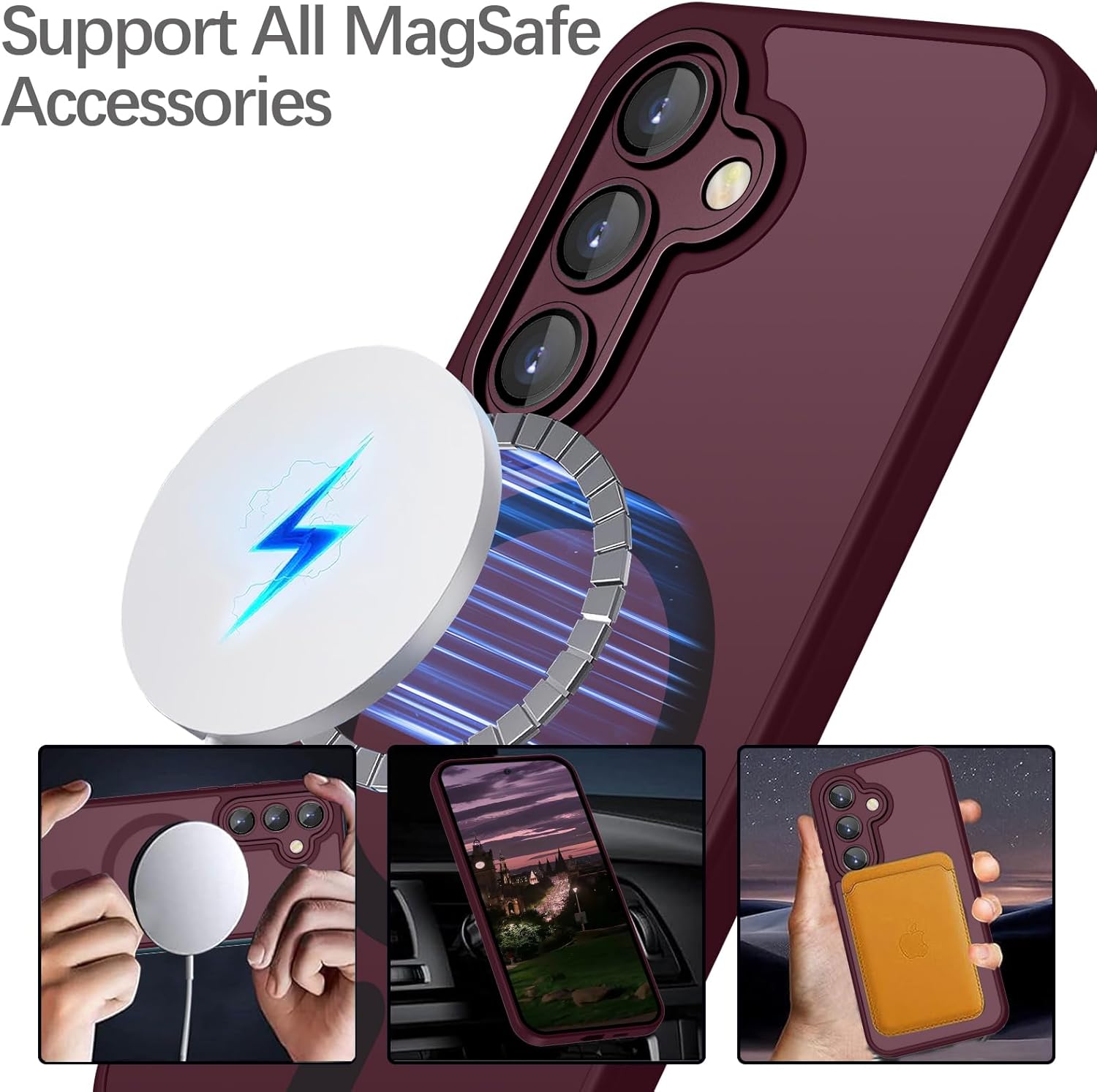 • Този калъф за мобилен телефон за Samsung Galaxy S24 е съвместим с магнитни аксесоари. С вграден магнитен пръстен, осигурява стабилно закрепване и по-бързо безжично зареждане.