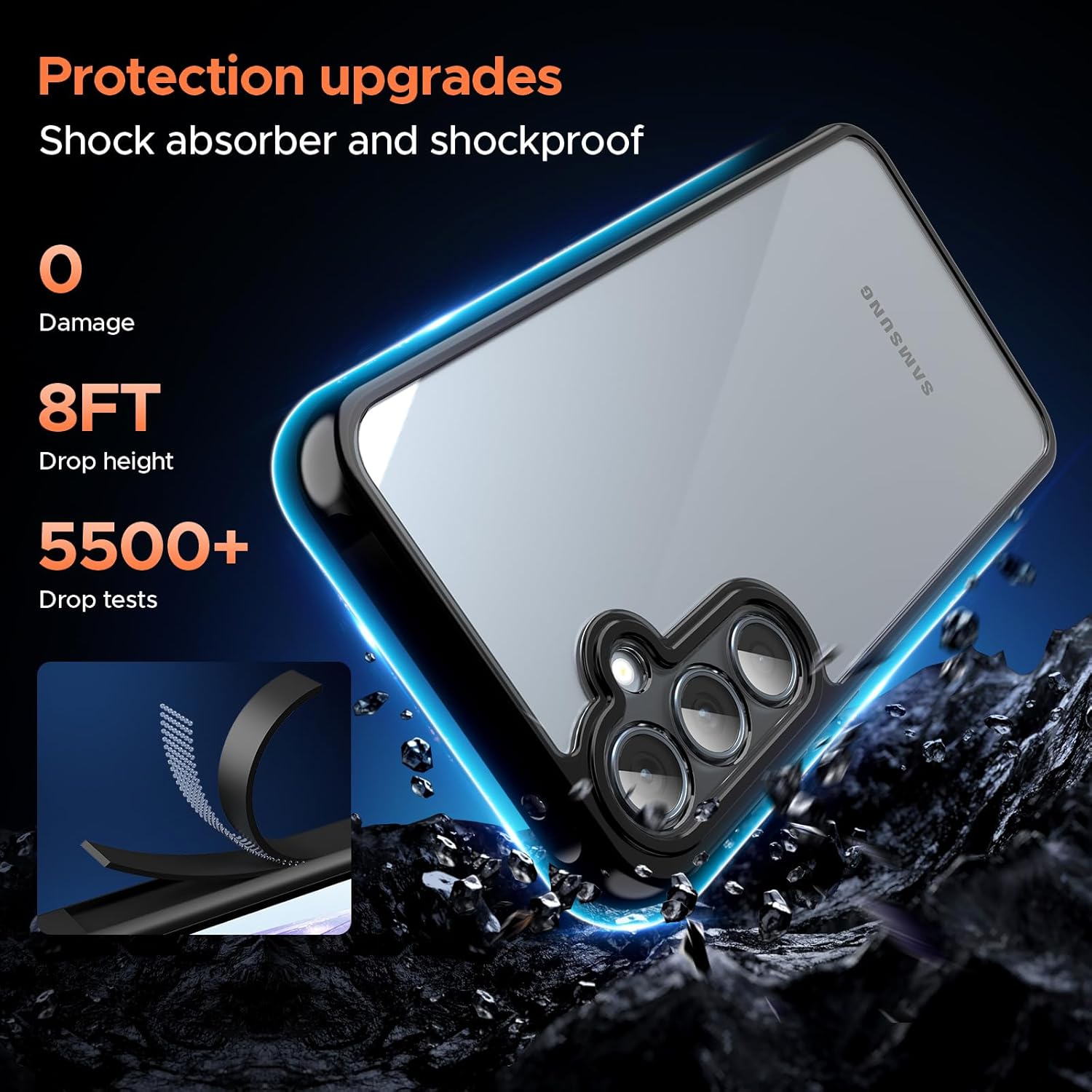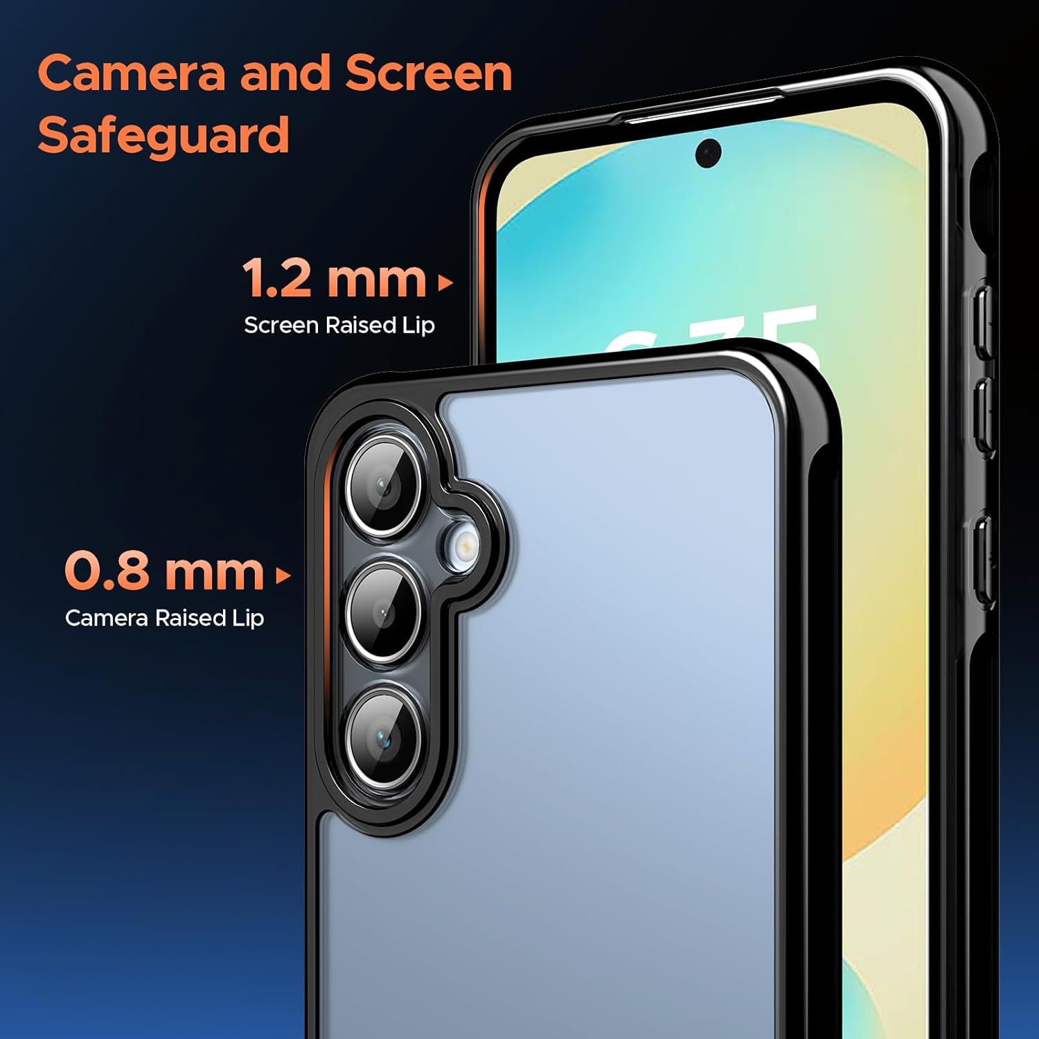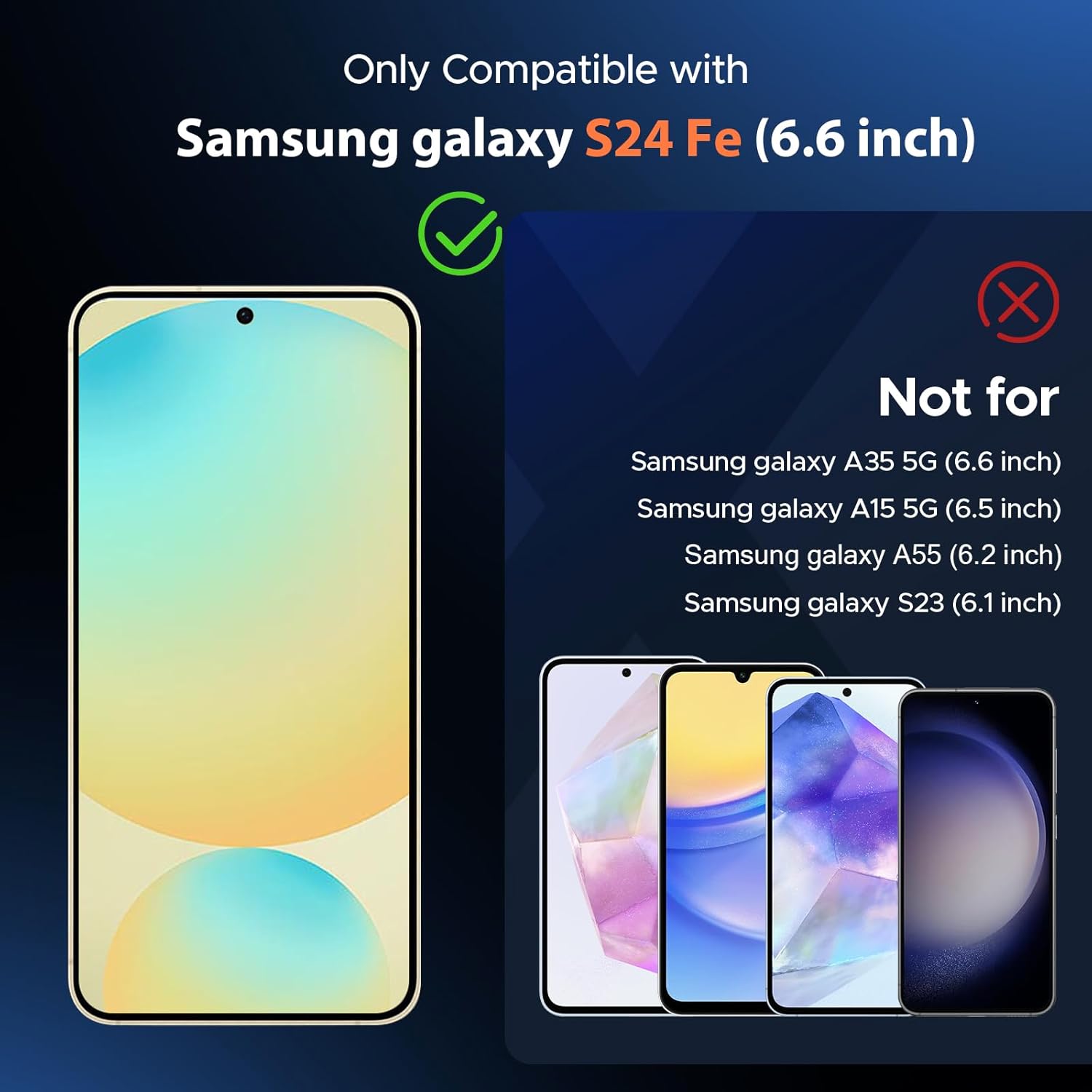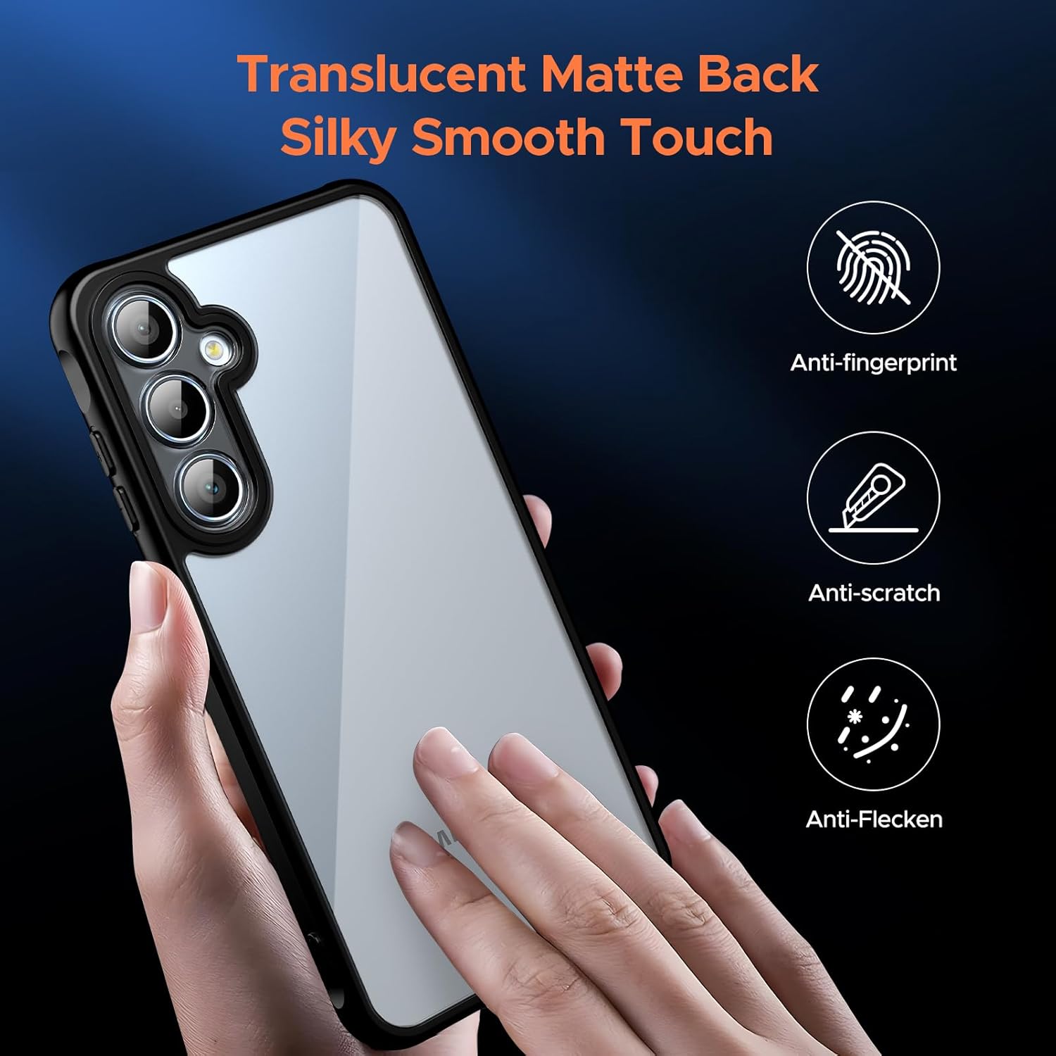 Кейс за Samsung Galaxy S24 FE 5G с 2 части защитно стъкло от закалено стъкло, [Защита на камерата] [Удароустойчив] Кейс за мобилен телефон, Черна TPU рамка + Прозрачен PC гръб, Против пръстови отпечатъци