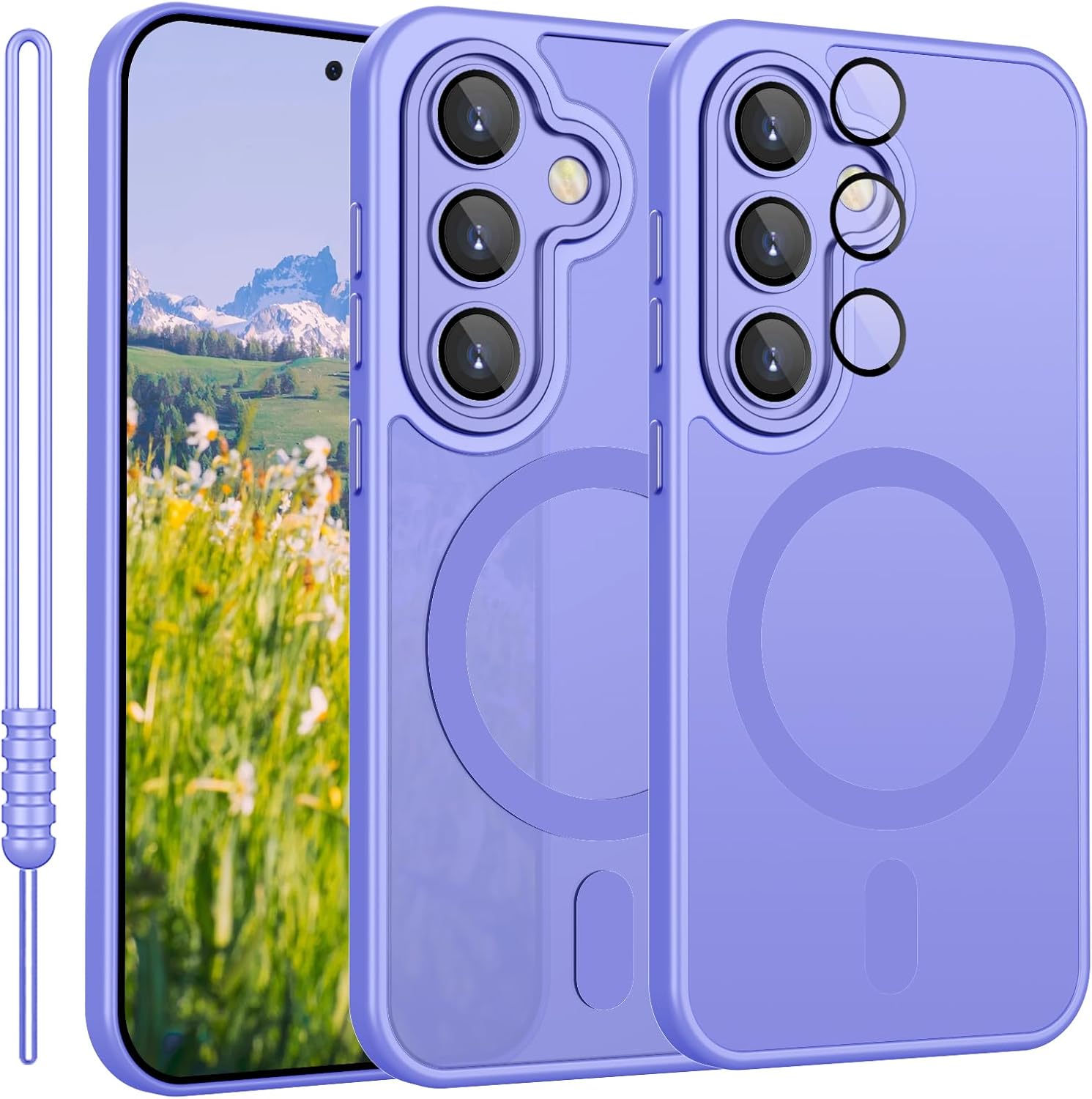 • YUANDMI Тънък магнитен калъф за телефон за Samsung Galaxy S24, не е съвместим с други версии. Поддържа безжично зареждане: