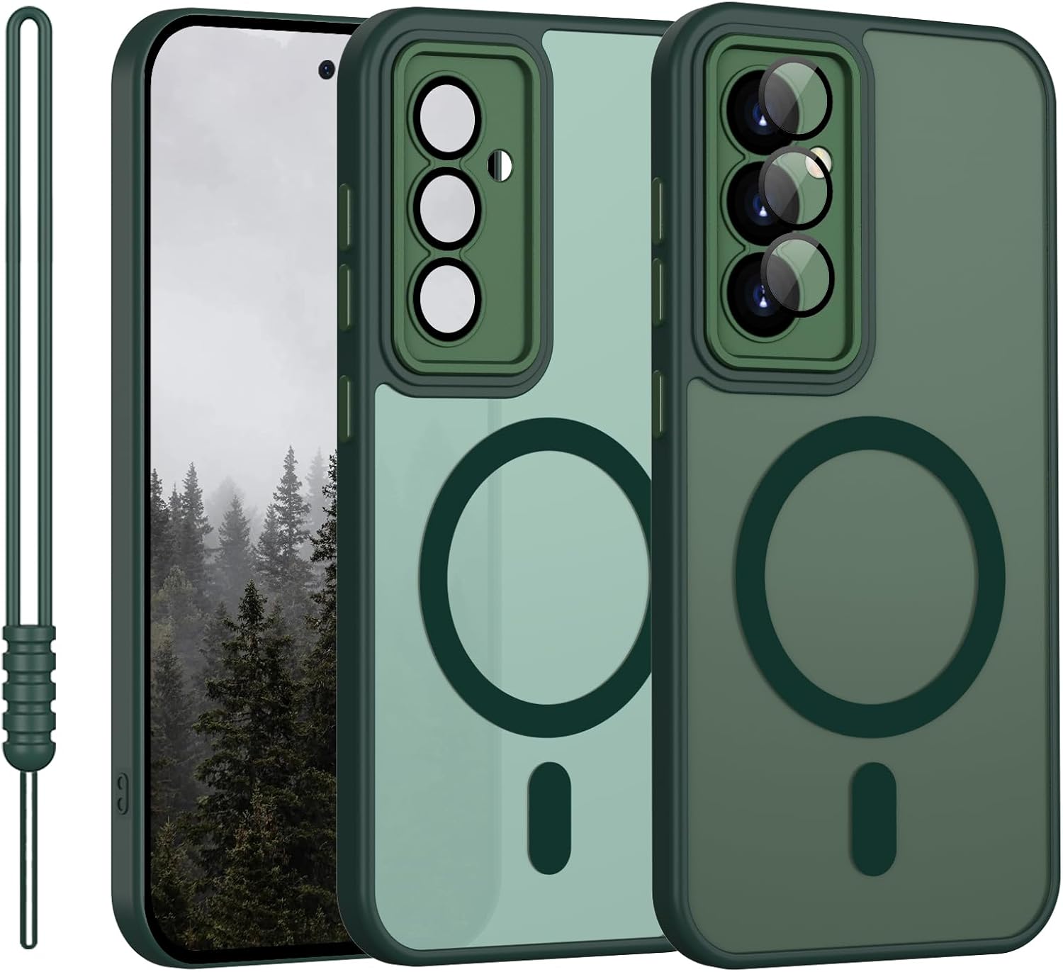 • YUANDMI Тънък магнитен калъф за телефон за Samsung Galaxy S24, не е съвместим с други версии. Поддържа безжично зареждане: