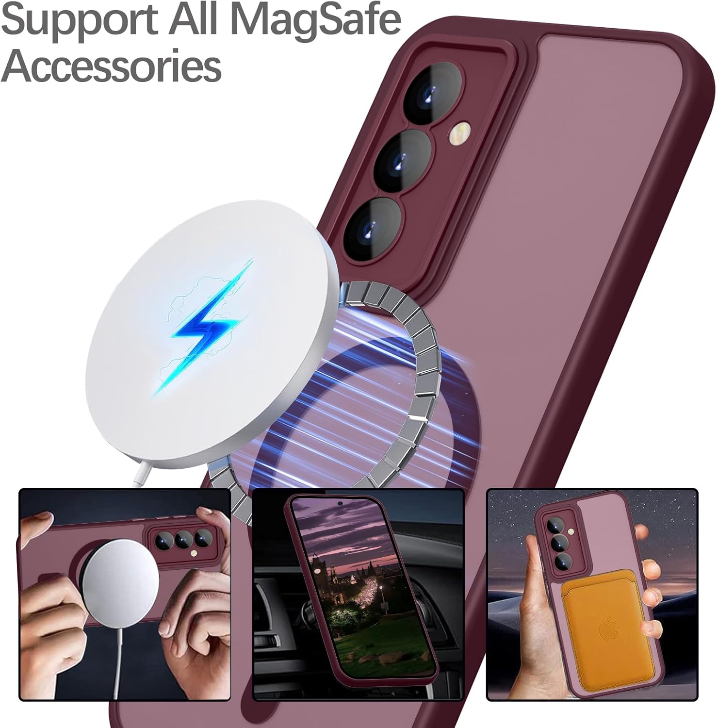 Кейс за Samsung Galaxy S24 Plus, Съвместим с MagSafe, Калъф за мобилен телефон за Samsung Galaxy S24 Plus, Магнитен матов сензорен екран, Защита на камерата, Неплъзгащ се, Устойчив на надраскване, Защита