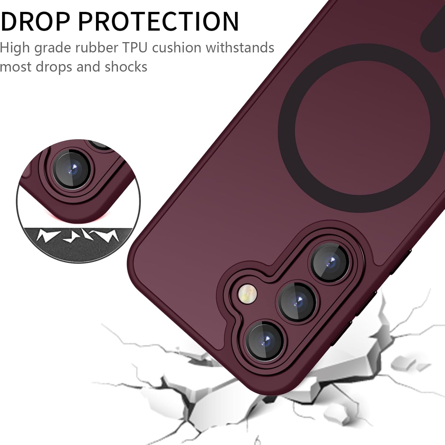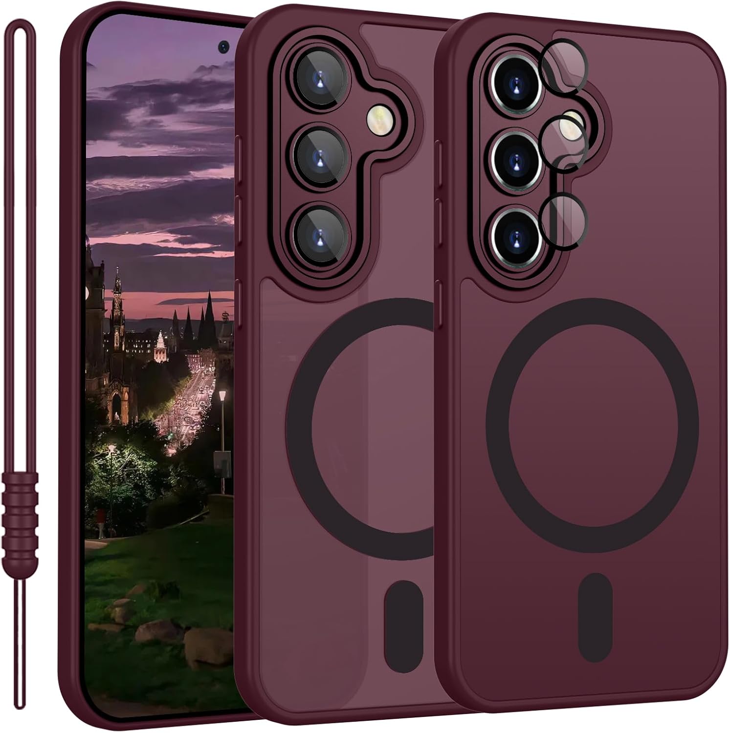 Кейс за Samsung Galaxy S24, Съвместим с MagSafe, Калъф за мобилен телефон за Samsung Galaxy S24, Магнитна матова сензорна защита за камерата, Неплъзгащ се, Устойчив на надраскване, Удароустойчив, Тъмночервен