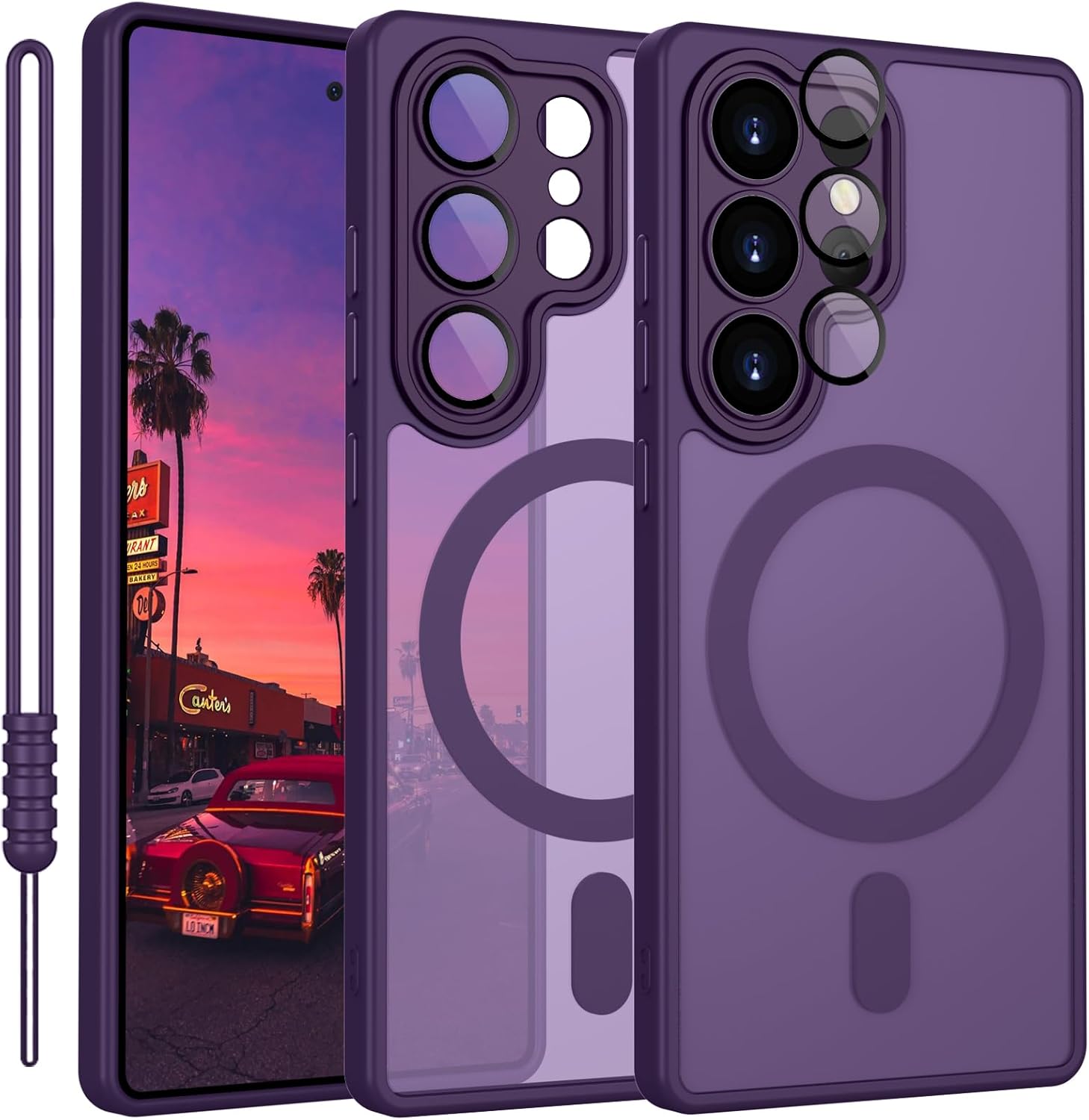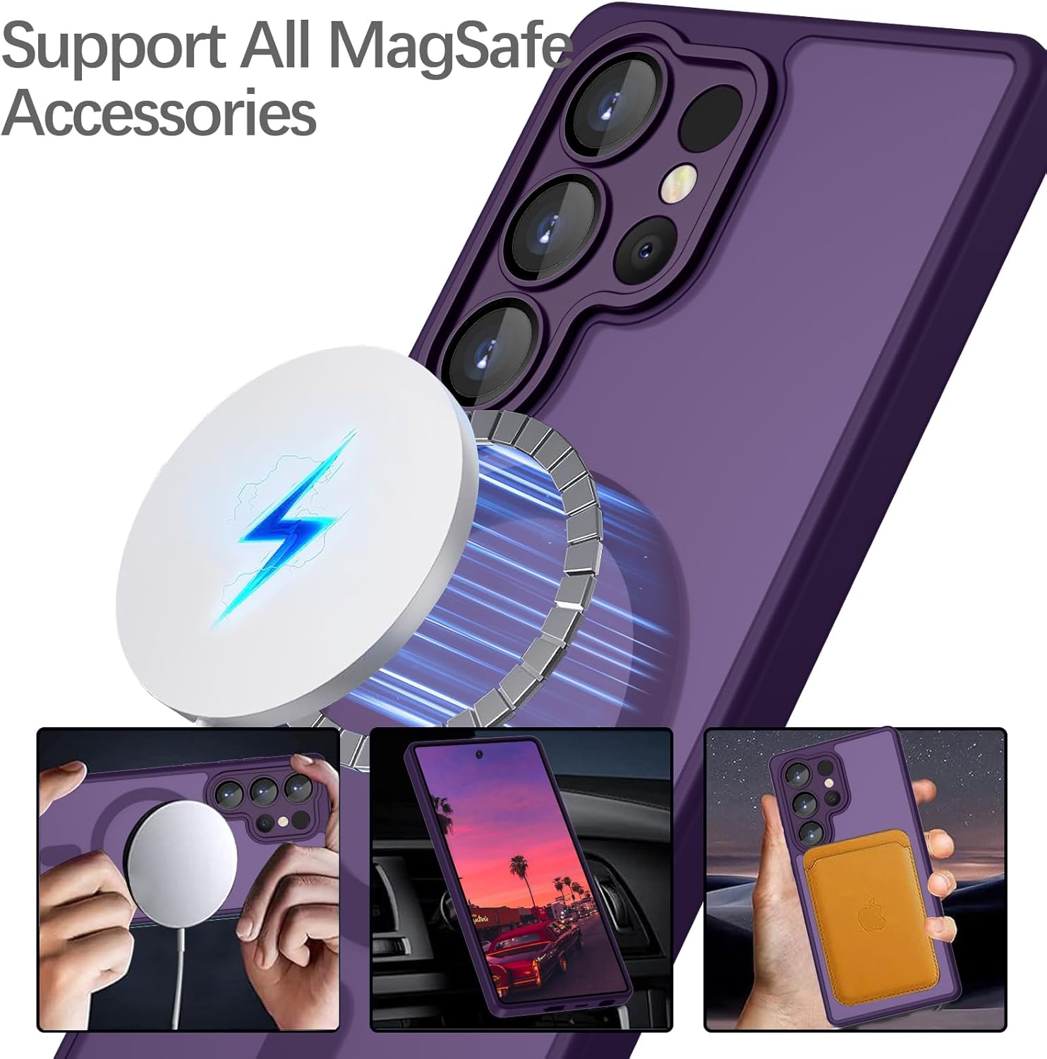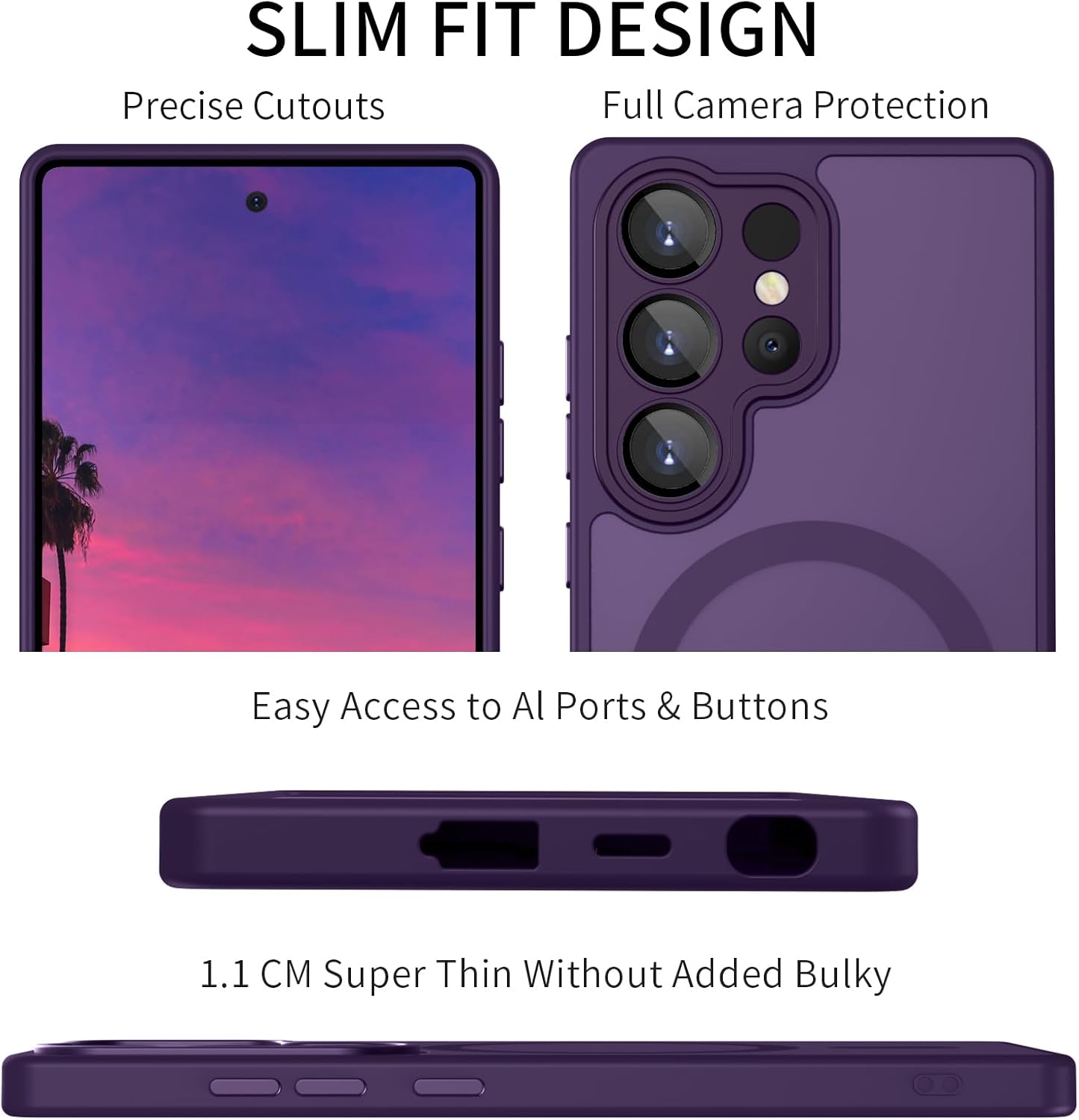Кейс за Samsung Galaxy S25 Ultra, съвместим с MagSafe, Калъф за мобилен телефон за Samsung Galaxy S25 Ultra, магнитен, матов, със сензорна защита на камерата, неплъзгащ се, устойчив на надраскване, удароустойчив калъф.