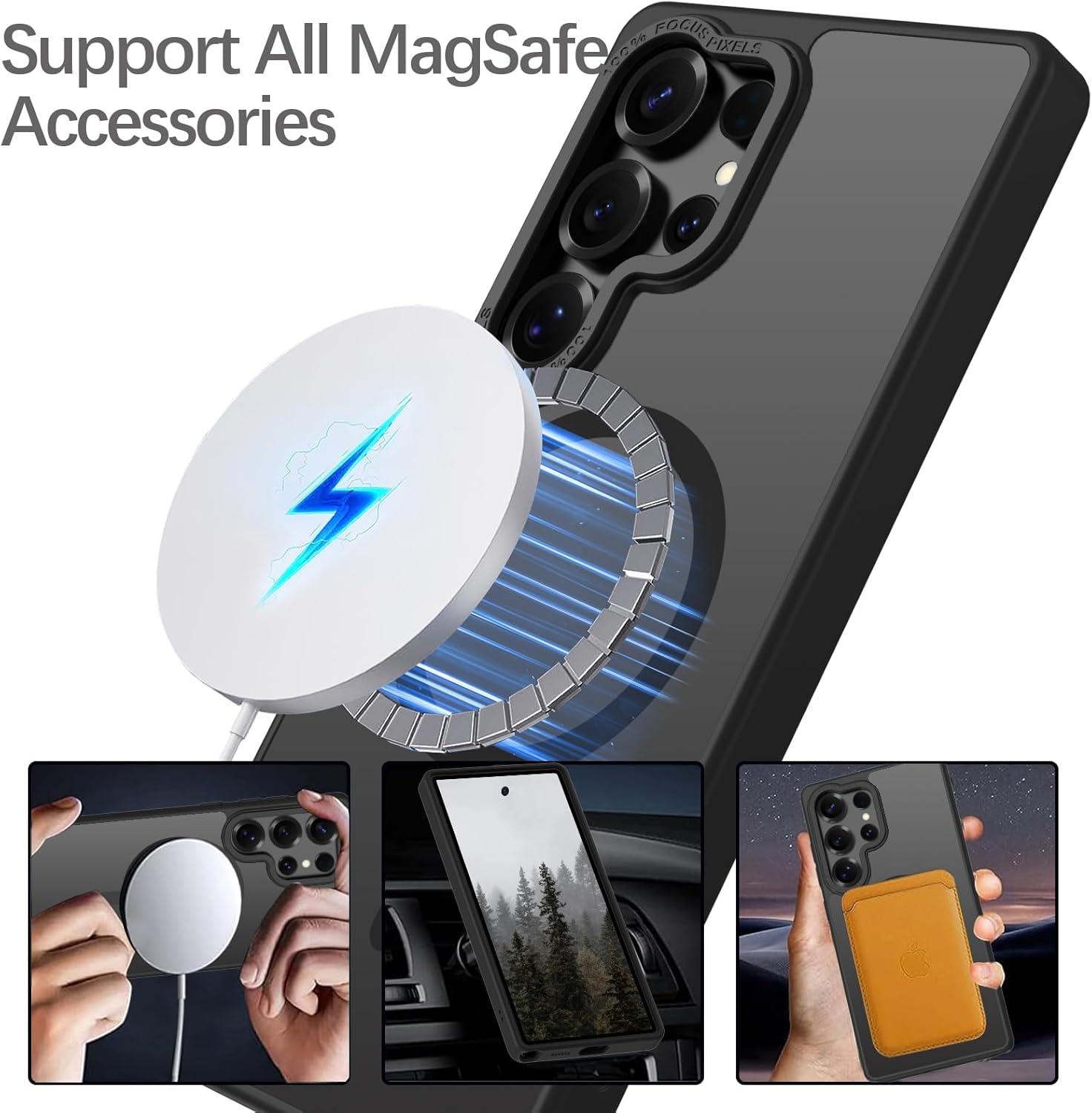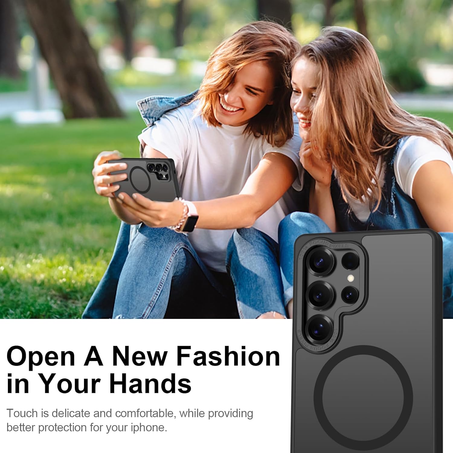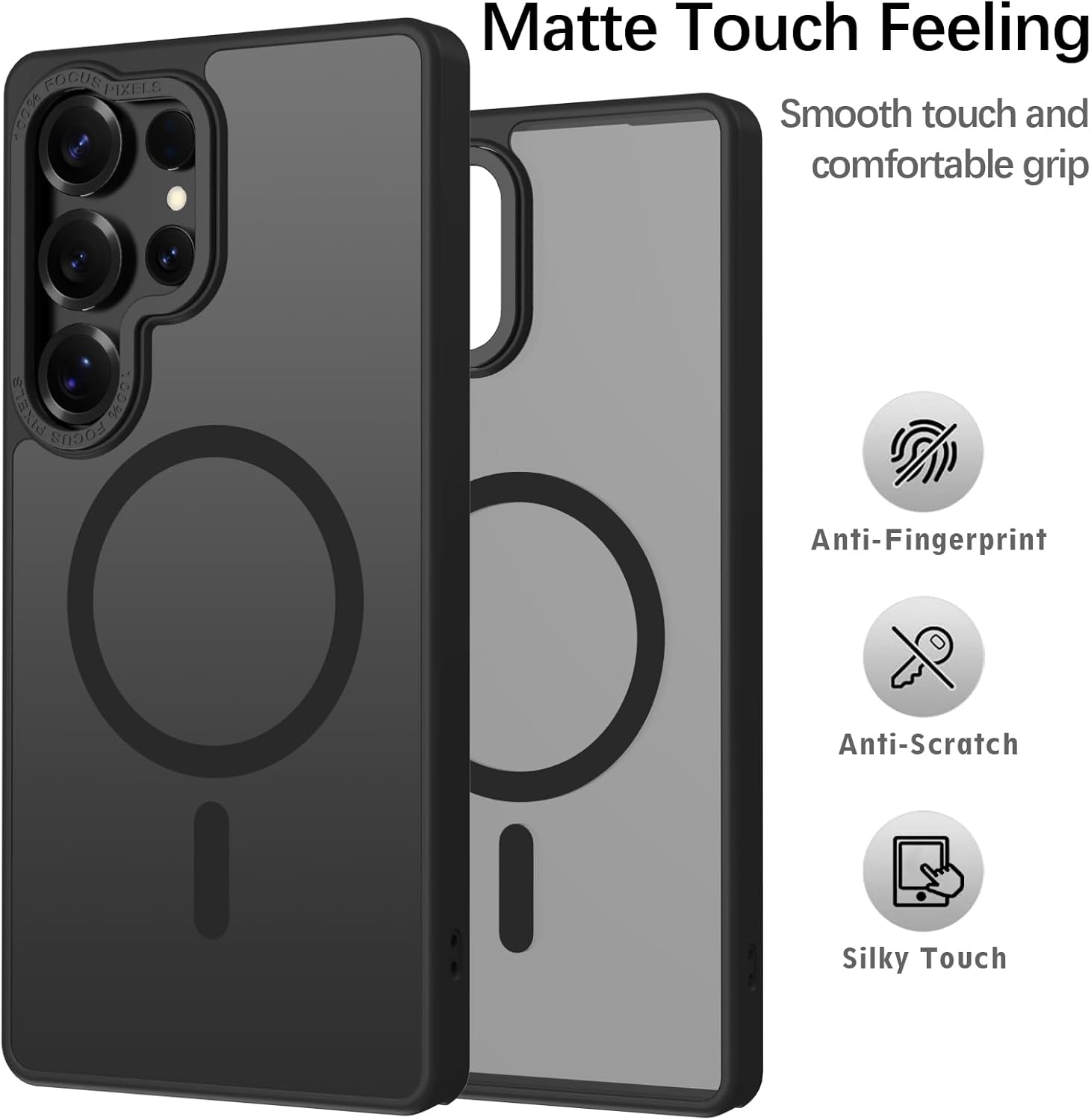 Кейс за Samsung Galaxy S25 Ultra, съвместим с MagSafe, Калъф за мобилен телефон за Samsung Galaxy S25 Ultra, магнитен, матов, със сензорна защита на камерата, неплъзгащ се, устойчив на надраскване, удароустойчив калъф.