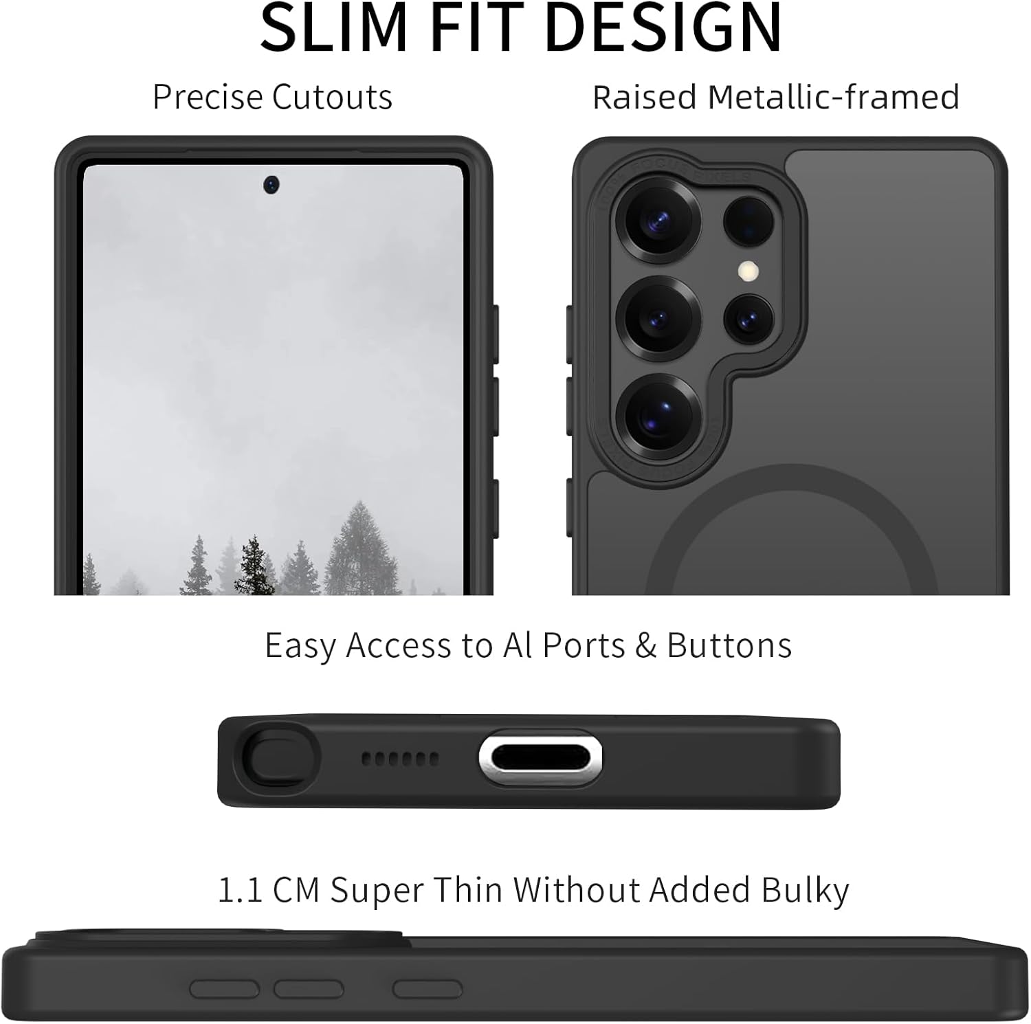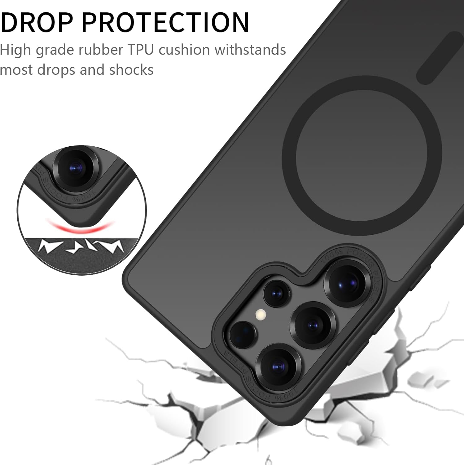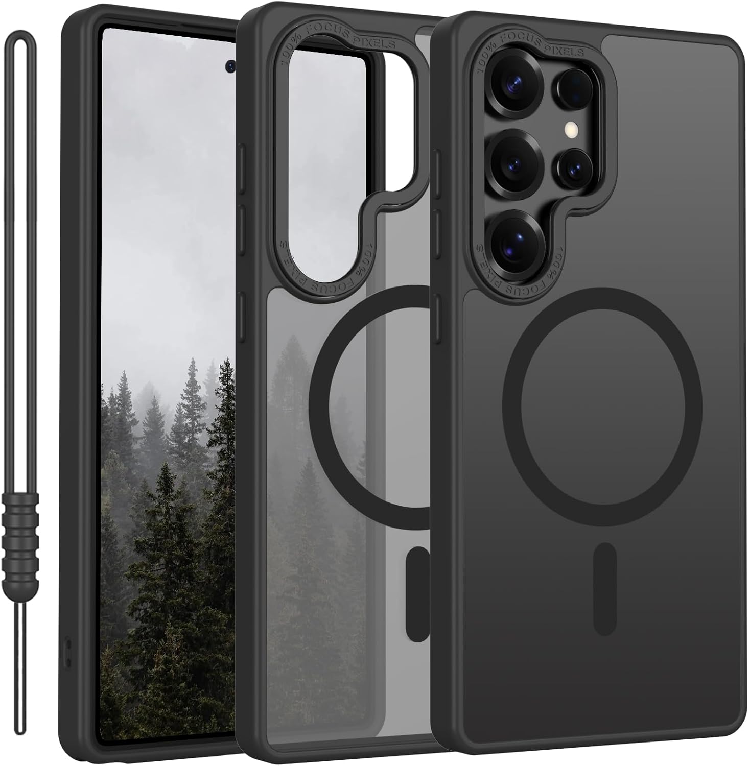 Кейс за Samsung Galaxy S25 Ultra, съвместим с MagSafe, Калъф за мобилен телефон за Samsung Galaxy S25 Ultra, магнитен, матов, със сензорна защита на камерата, неплъзгащ се, устойчив на надраскване, удароустойчив калъф.