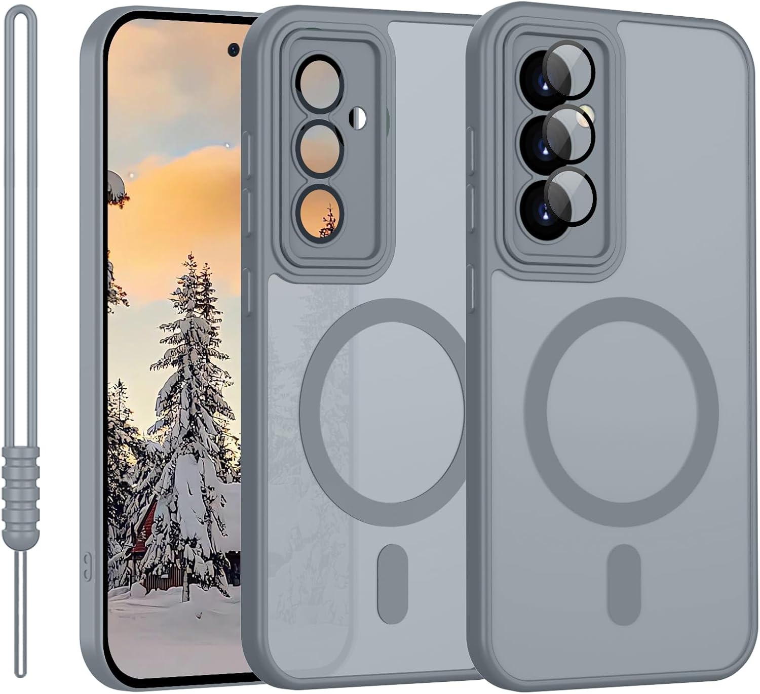 • YUANDMI Тънък магнитен калъф за телефон за Samsung Galaxy S24, не е съвместим с други версии. Поддържа безжично зареждане: