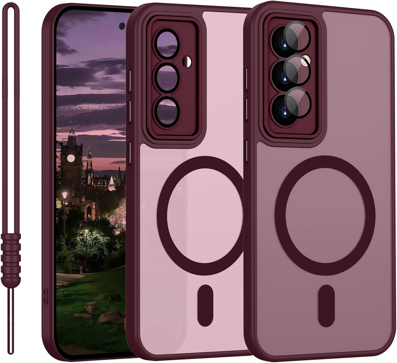 Кейс за Sumsung Galaxy A05S с MagSafe, Hany Case за Sumsung Galaxy A05S с магнитна матова защита на сензорната камера, неплъзгащ се, устойчив на надраскване, удароустойчив кейс за Sumsung A05S, тъмночервен