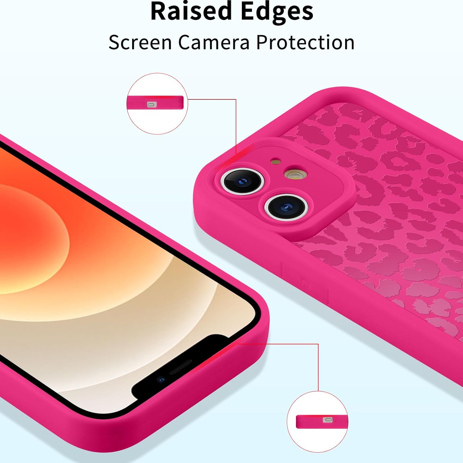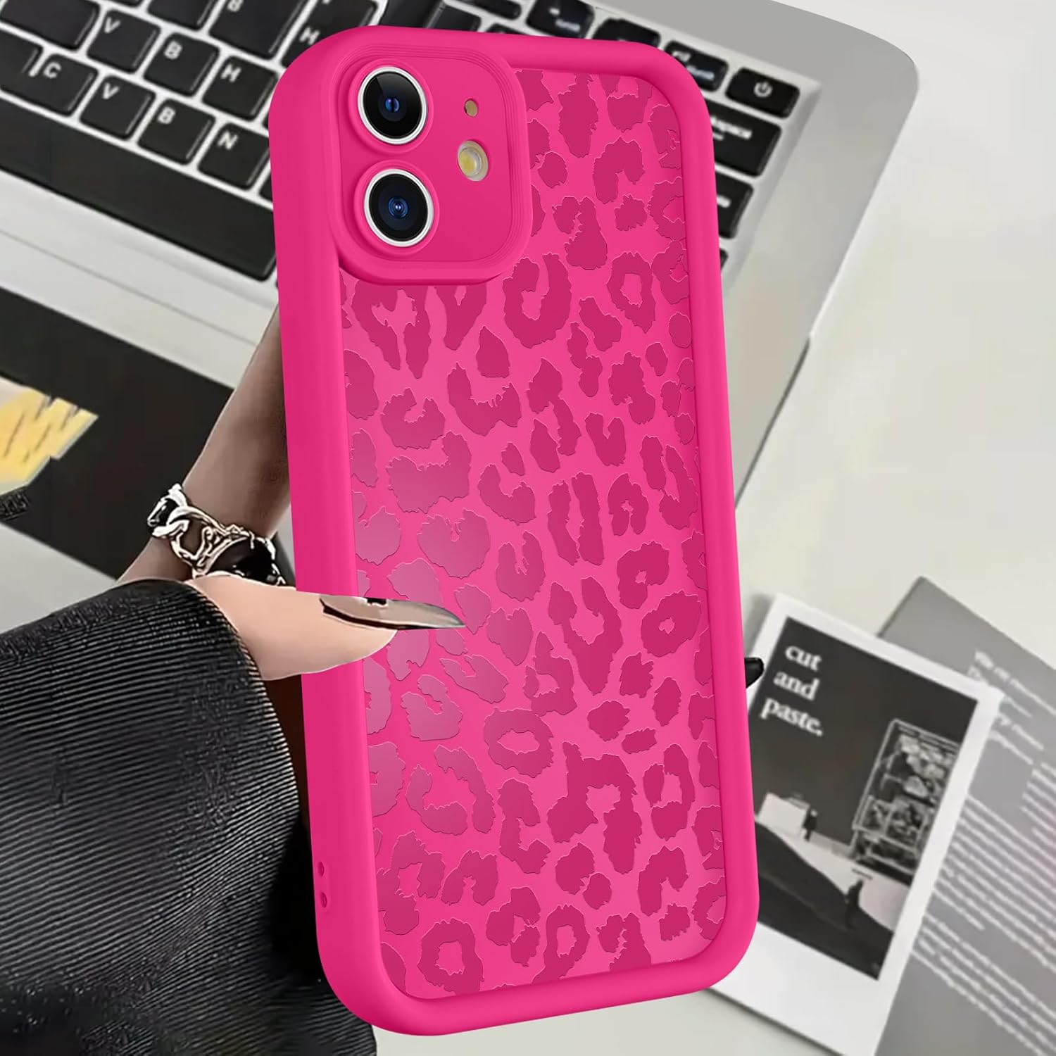 Кейс ZhuoFan за iPhone 12 6.1 инча, естетичен калъф за мобилен телефон с леопардов мотив, розово червено, матов защитен калъф, мек силиконов, тънък TPU калъф, удароустойчив, устойчив на надраскване, брониран калъф, 04