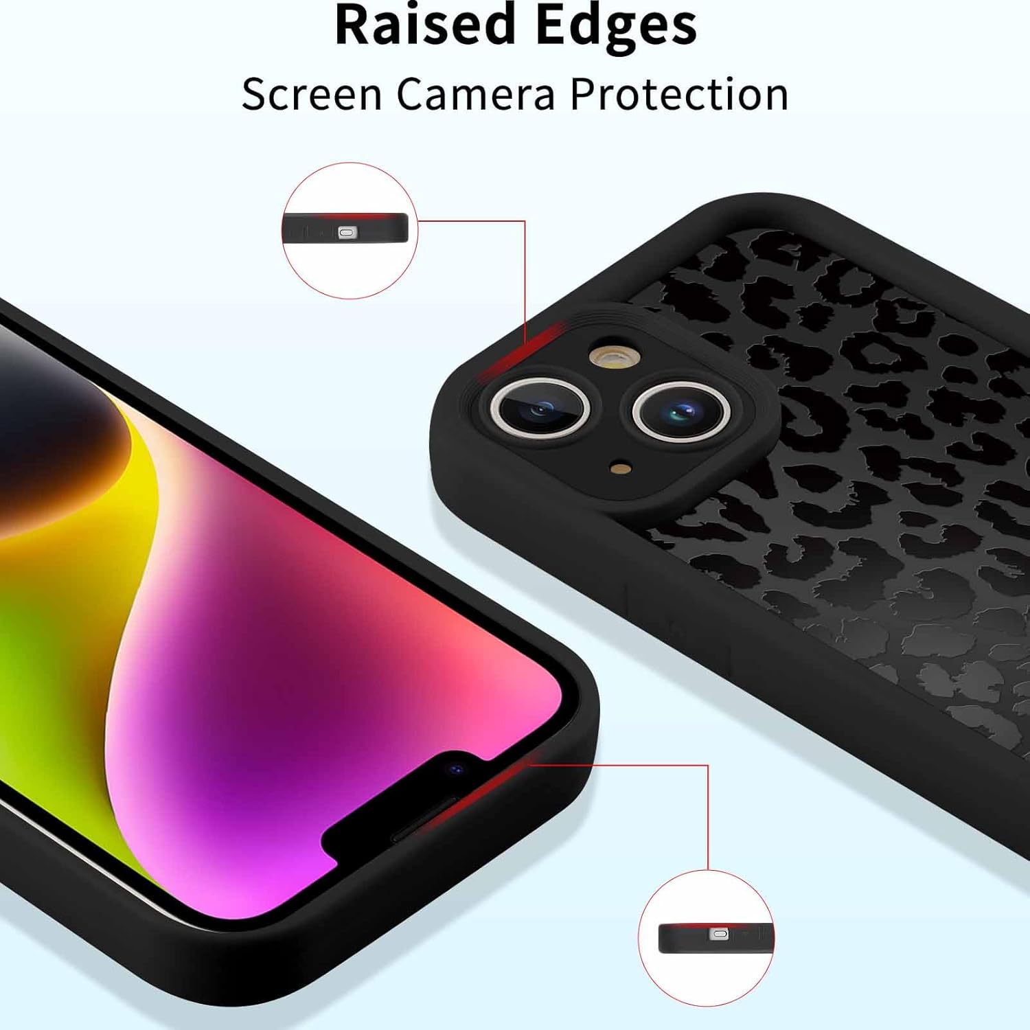 • Превъзходна защита: защитният калъф е изработен от силиконов материал, мек и издръжлив. Повдигнатият ръб на камерата и екрана осигурява максимална защита на гърба и отстрани на мобилния телефон, за да предотврати сблъсъци и удари.