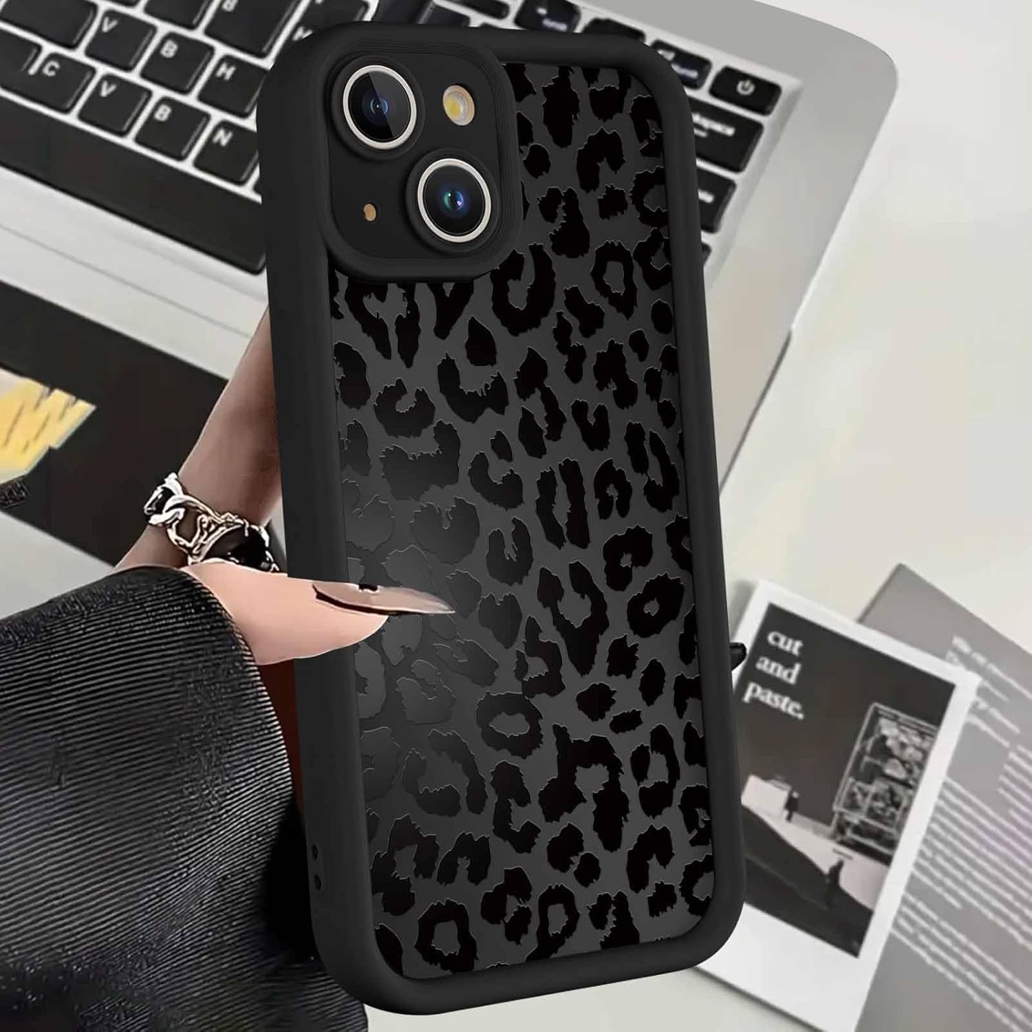 Кейс ZhuoFan за iPhone 13 6.1 инча, естетичен калъф за мобилен телефон с леопардов мотив, черен матов защитен калъф, ултра мек силиконов тънък TPU калъф, удароустойчив, устойчив на надраскване, брониран калъф, 05