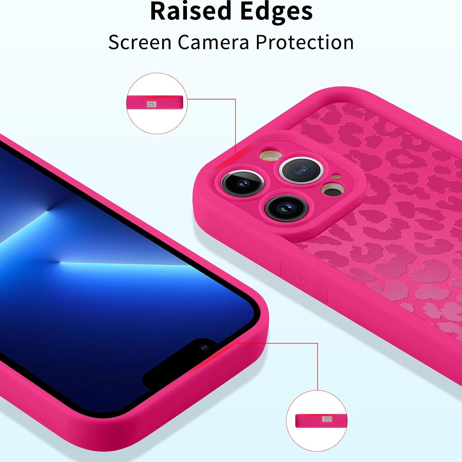 Кейс ZhuoFan за iPhone 13 Pro 6.1 инча, естетичен калъф за мобилен телефон с леопардов мотив, розовочервен, матов, защитен калъф, мек силиконов, тънък TPU калъф, удароустойчив, устойчив на надраскване, брониран калъф, 04