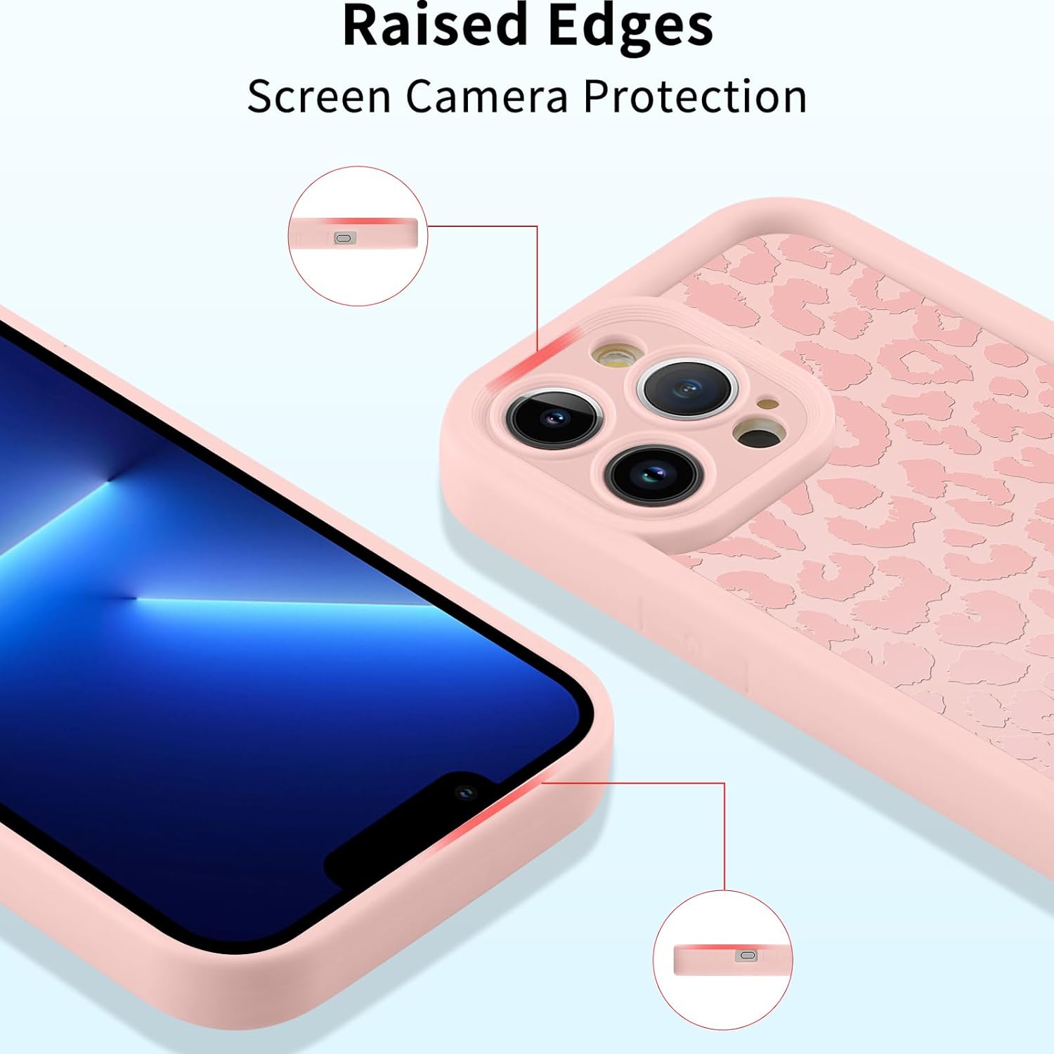 Кейс ZhuoFan за iPhone 13 Pro Max 6.7 инча, естетичен калъф за мобилен телефон с леопардов мотив, розов матов защитен калъф, мек силикон, тънък TPU калъф, удароустойчив, устойчив на надраскване, предпазен капак, 03