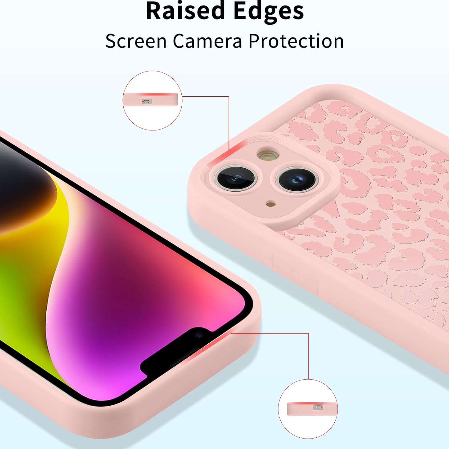 Кейс ZhuoFan за iPhone 14 6.1 инча, естетичен калъф за мобилен телефон с леопардов мотив, розов, матов, защитен калъф, мек силиконов, тънък TPU калъф, удароустойчив, устойчив на надраскване, брониран калъф, 03