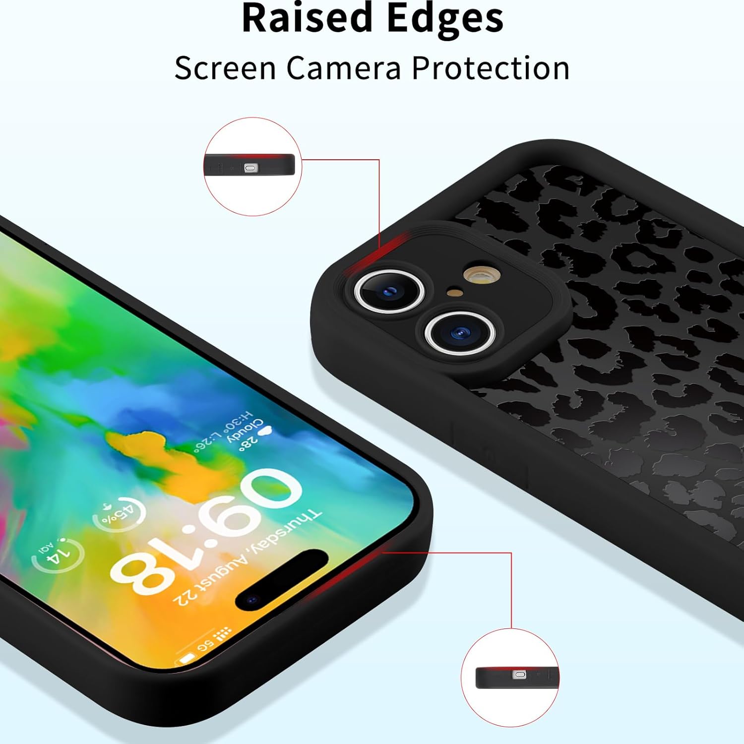 • Превъзходна защита: защитният калъф е изработен от силиконов материал, мек и издръжлив. Повдигнатият ръб на камерата и екрана осигурява максимална защита на гърба и отстрани на мобилния телефон, за да предотврати сблъсъци и удари.