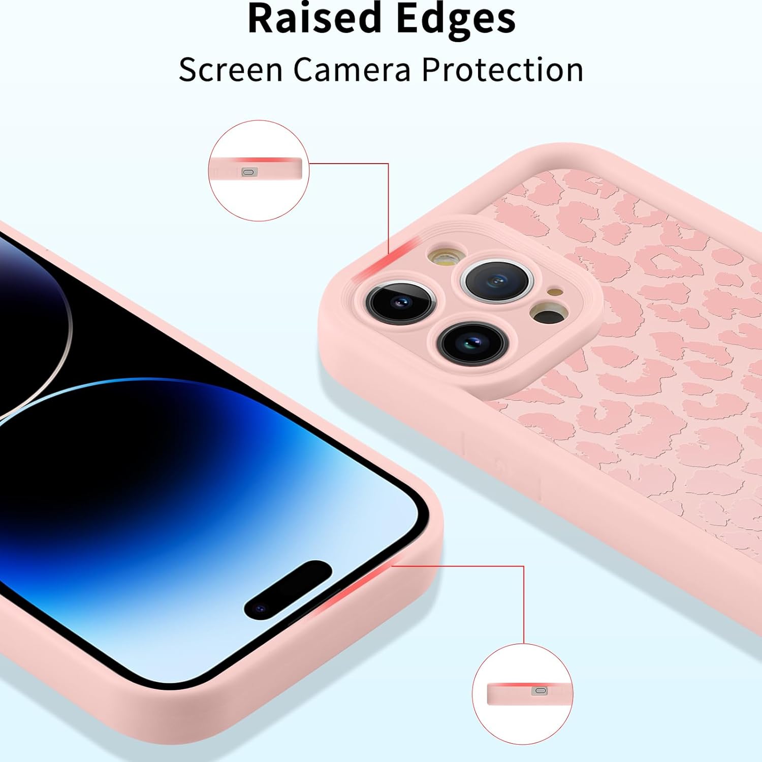 Кейс ZhuoFan за iPhone 14 Pro Max 6.7 инча, естетичен калъф за мобилен телефон с леопардов мотив, розов, матов, защитен калъф, мек силиконов, тънък TPU калъф, удароустойчив, устойчив на надраскване, брониран калъф, 03