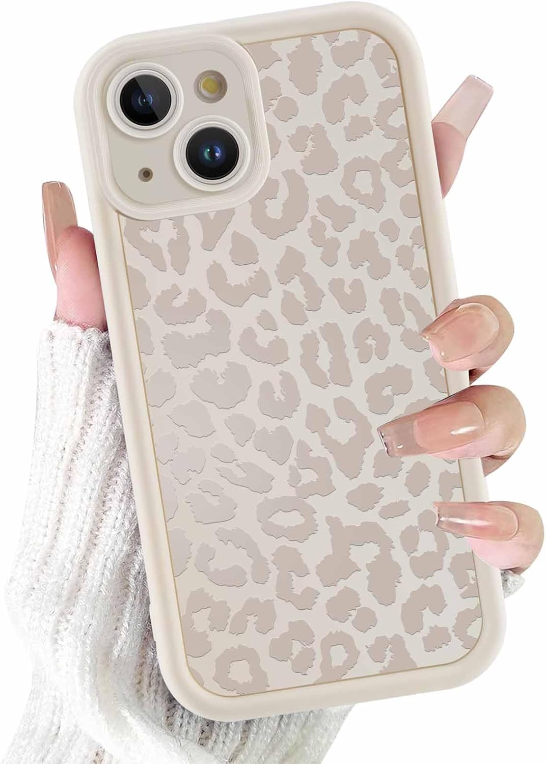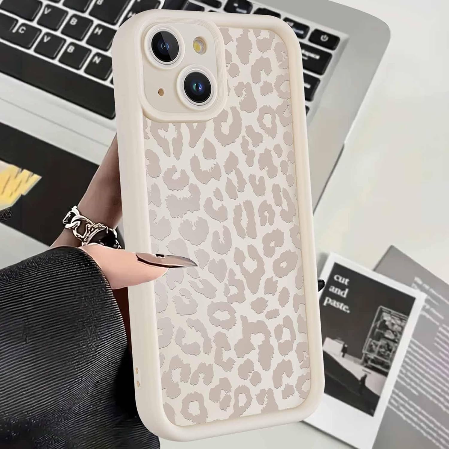 Кейс ZhuoFan за iPhone 15 6.1 инча, естетичен калъф за мобилен телефон с леопардов мотив, бял матов защитен калъф, ултра мек силиконов тънък TPU калъф, удароустойчив, устойчив на надраскване, брониран калъф, 07