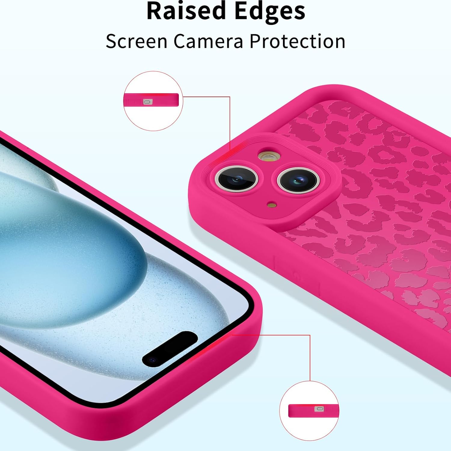 Кейс ZhuoFan за iPhone 15 6.1 инча, естетичен калъф за мобилен телефон с леопардов мотив, розово червено, матов защитен калъф, мек силиконов, тънък TPU калъф, удароустойчив, устойчив на надраскване, брониран калъф, 04
