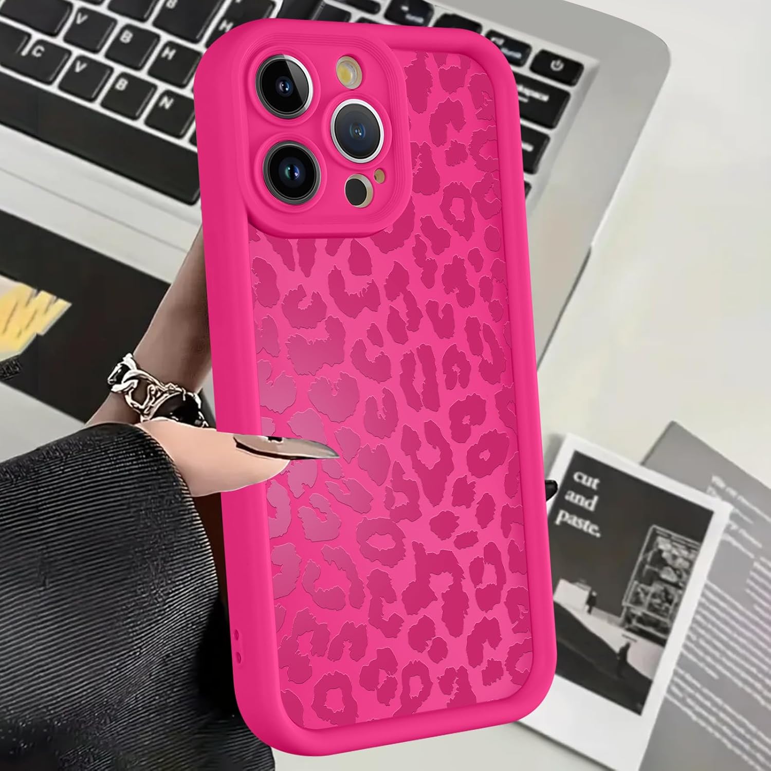 Кейс ZhuoFan за iPhone 15 Pro 6.1 инча, естетичен калъф за мобилен телефон с леопардов мотив, розово червено, матов защитен калъф, мек силиконов, тънък TPU калъф, удароустойчив, устойчив на надраскване, брониран калъф, 04