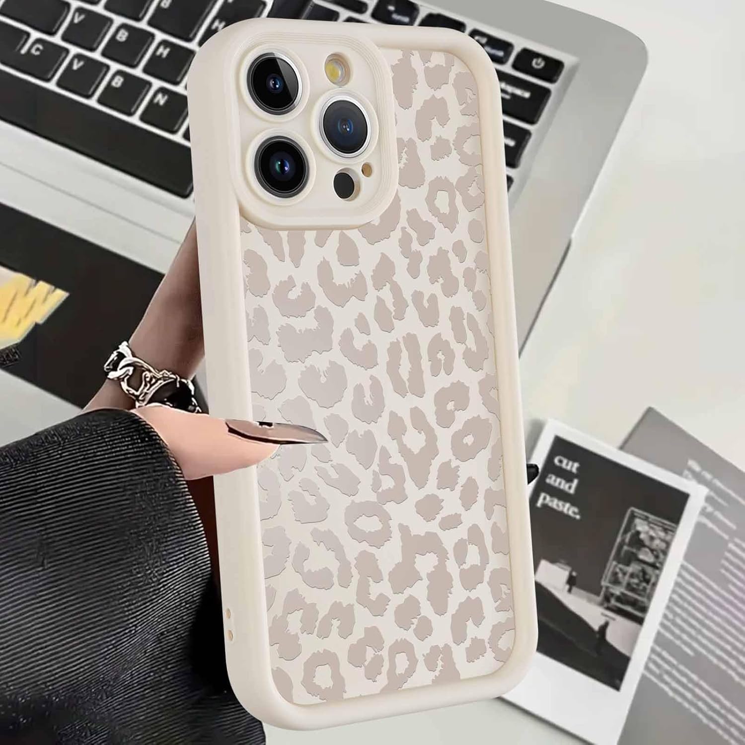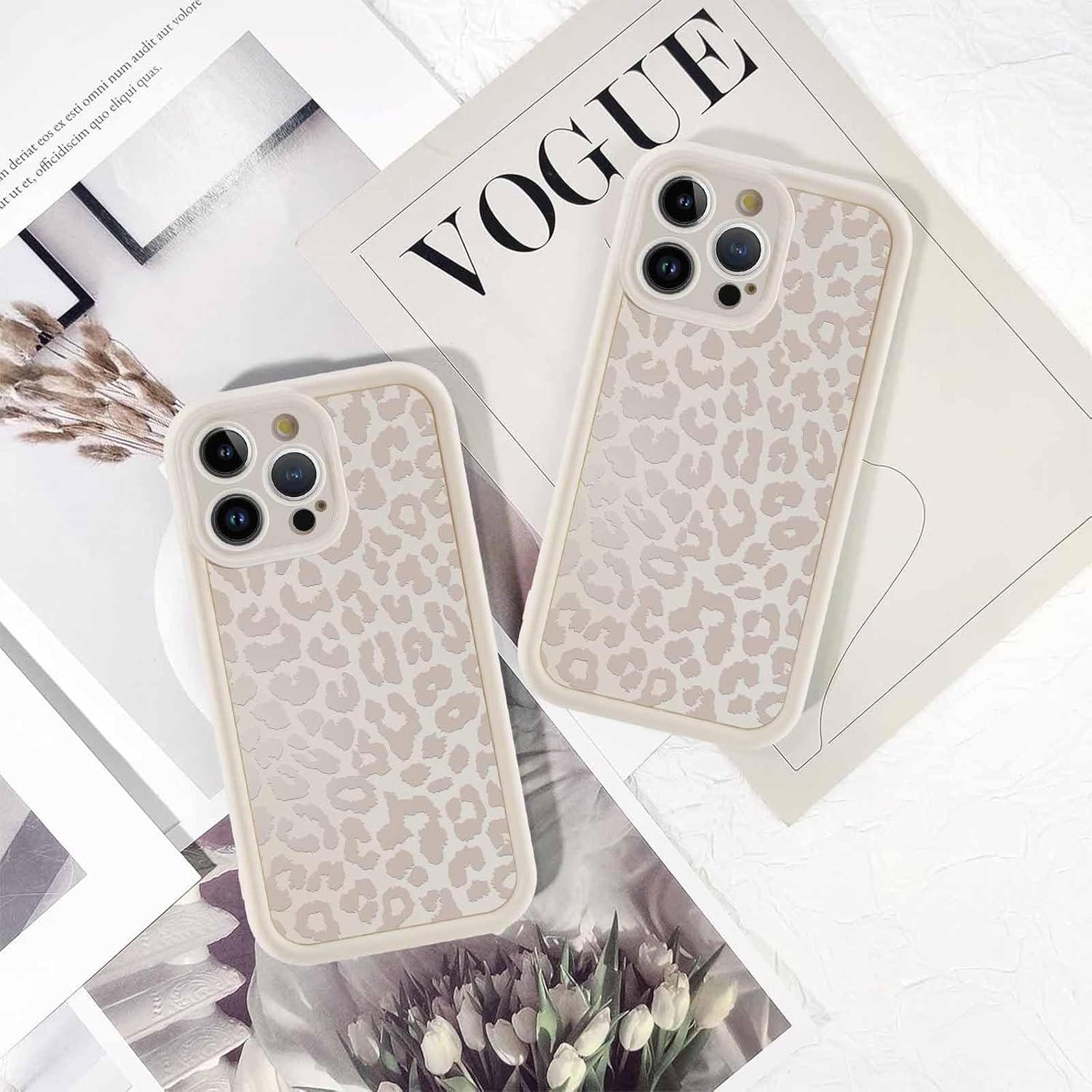 Кейс ZhuoFan за iPhone 15 Pro Max 6.7 инча, естетичен калъф за мобилен телефон с леопардов мотив, бял матов защитен калъф, ултра мек силиконов тънък TPU калъф, удароустойчив, устойчив на надраскване, брониран калъф, 07