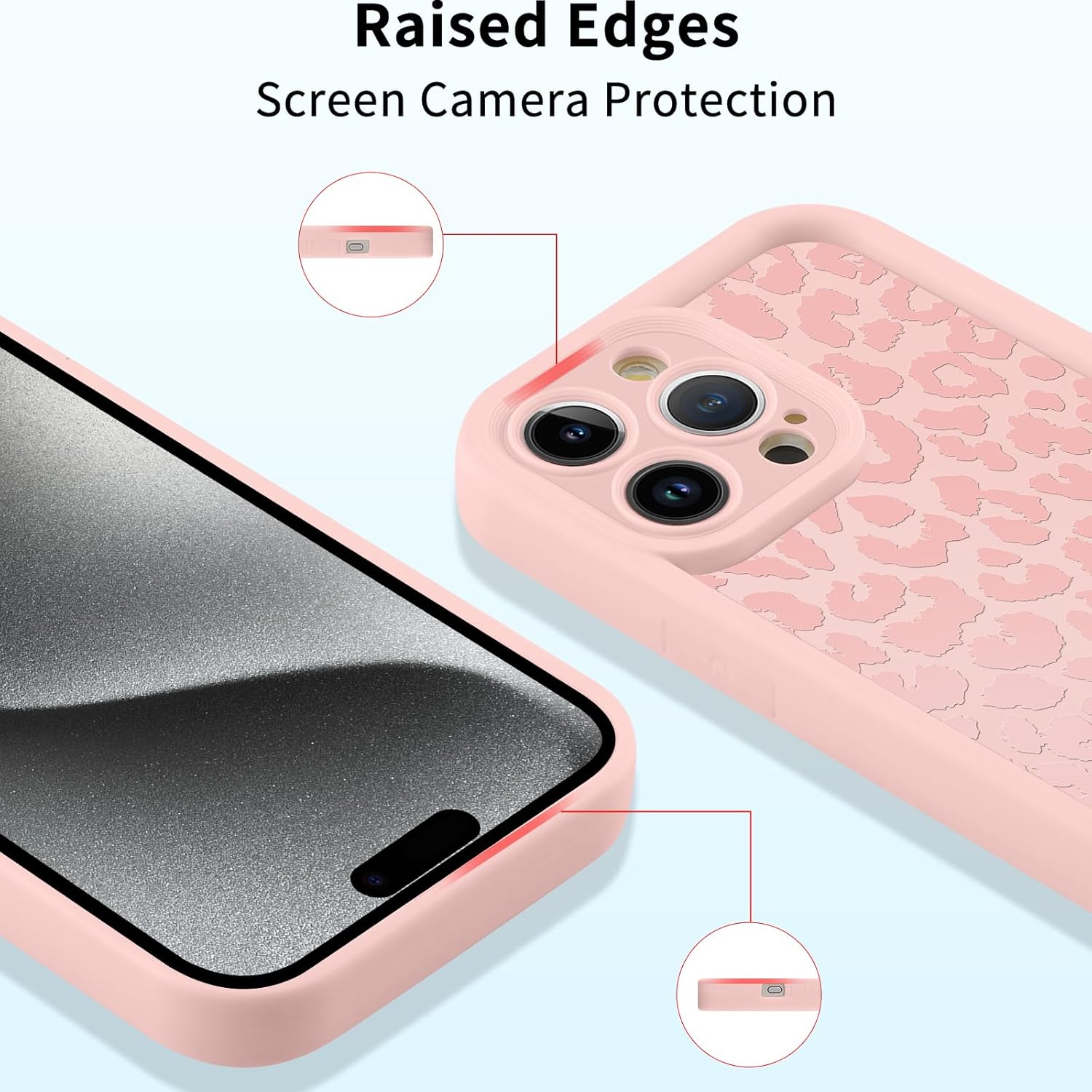 Кейс ZhuoFan за iPhone 15 Pro Max 6.7 инча, естетичен калъф за мобилен телефон с леопардов мотив, розов, матов, защитен калъф, мек силиконов, тънък TPU калъф, удароустойчив, устойчив на надраскване, брониран калъф, 03