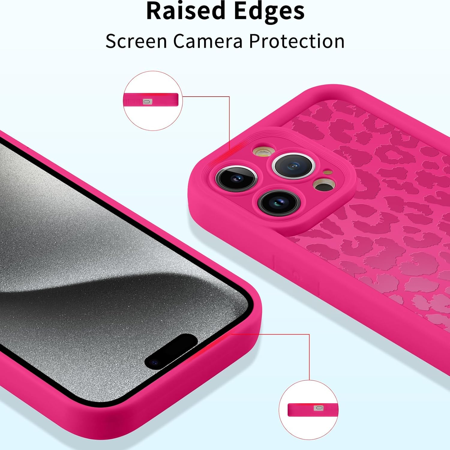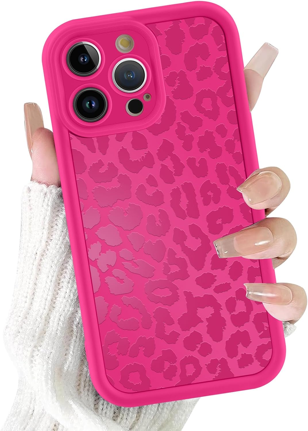 Кейс ZhuoFan за iPhone 15 Pro Max 6.7 инча, естетичен калъф за мобилен телефон с леопардов мотив, розовочервен, матов защитен калъф, мек силикон, тънък TPU калъф, удароустойчив, устойчив на надраскване, предпазен капак, 04