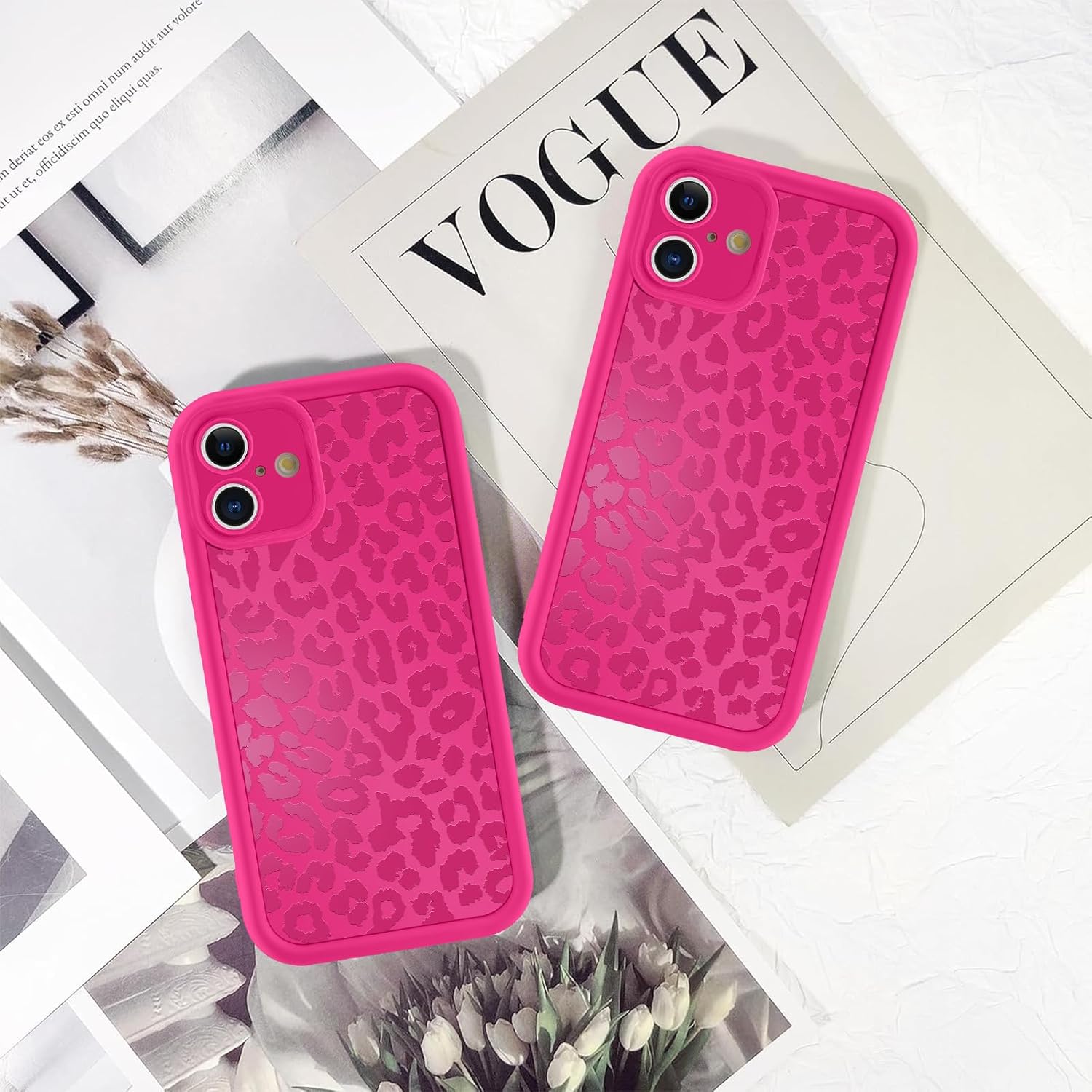 Кейс ZhuoFan за iPhone 16 6.1 инча, естетичен калъф за мобилен телефон с леопардов мотив, розово червено, матов защитен калъф, мек силиконов, тънък TPU калъф, удароустойчив, устойчив на надраскване, брониран калъф, 04
