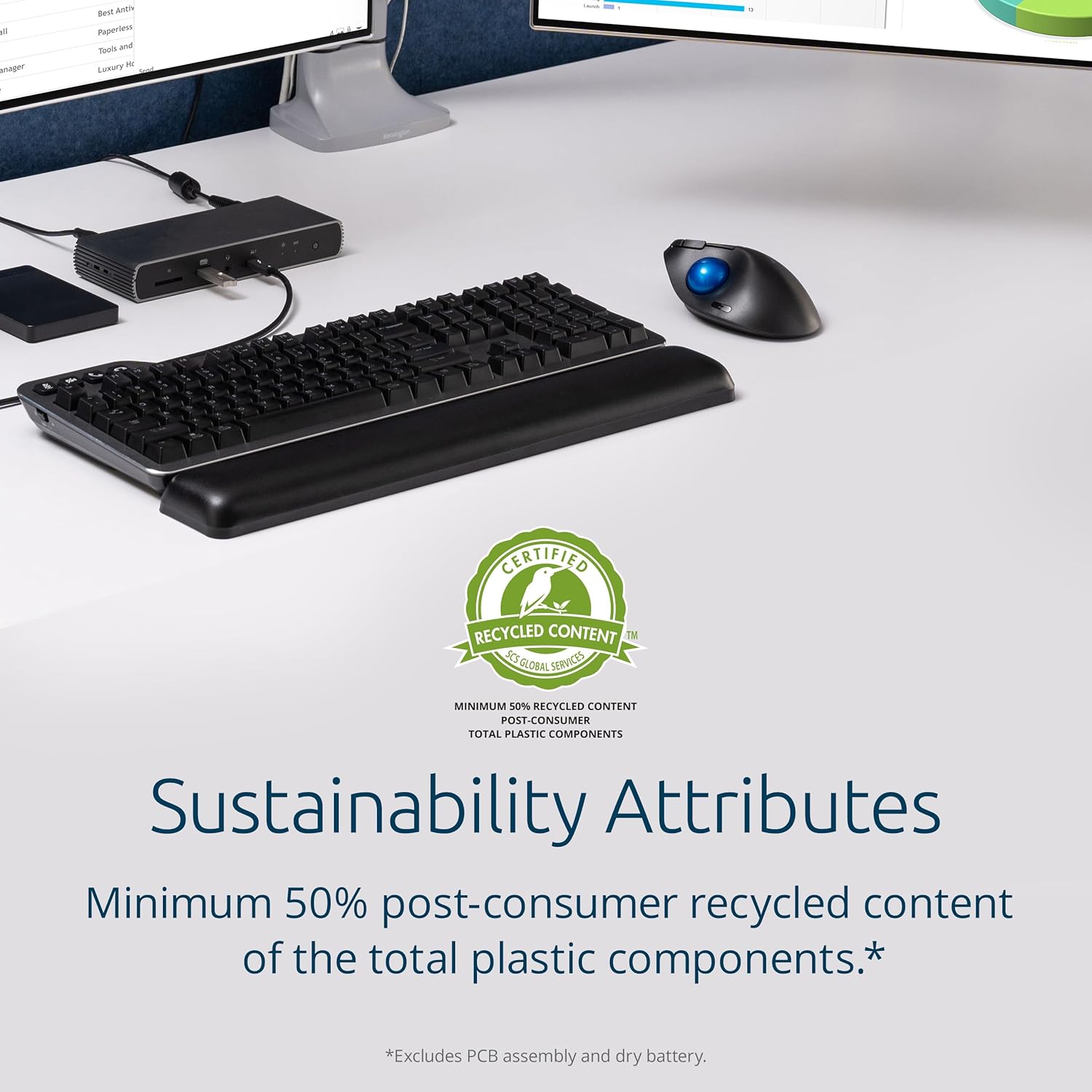 Kensington Pro Fit Ergo TB450 тракбол мишка, безжична Bluetooth мишка, живот на батерията до 18 месеца, ергономичен 34 мм тракбол, изработен от до 50% рециклирана пластмаса (K72194WW)