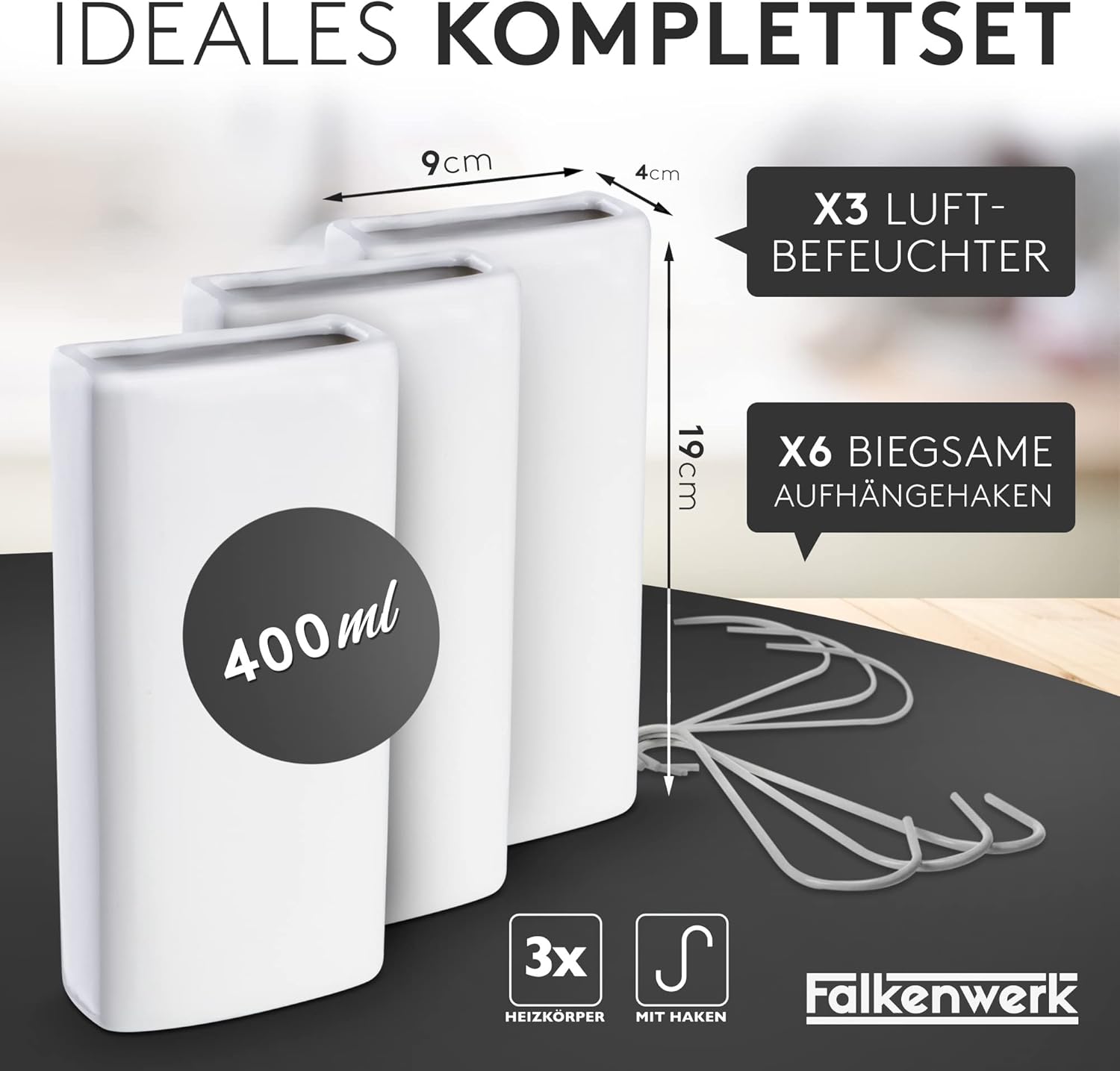 Керамичен радиаторен овлажнител [Пакет от 3] - Универсален радиаторен овлажнител с гъвкава кука за окачване - Устойчиво отопление с овлажнител [Подходящ за всички отоплителни уреди] Бял