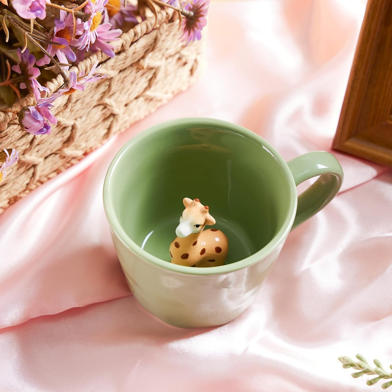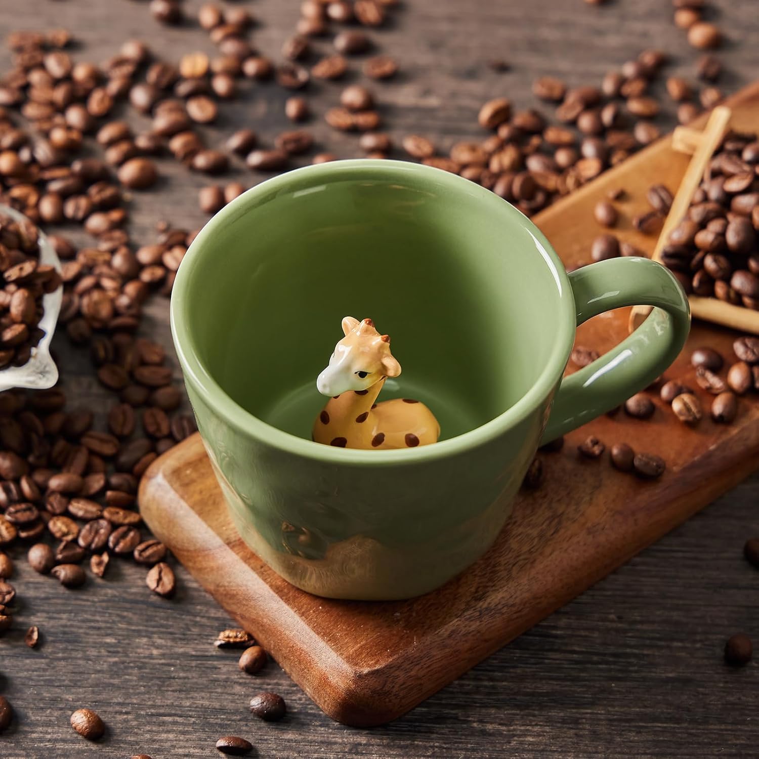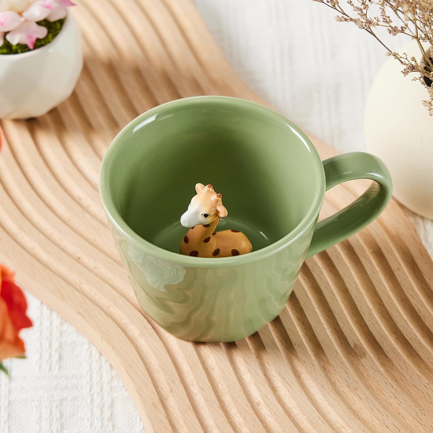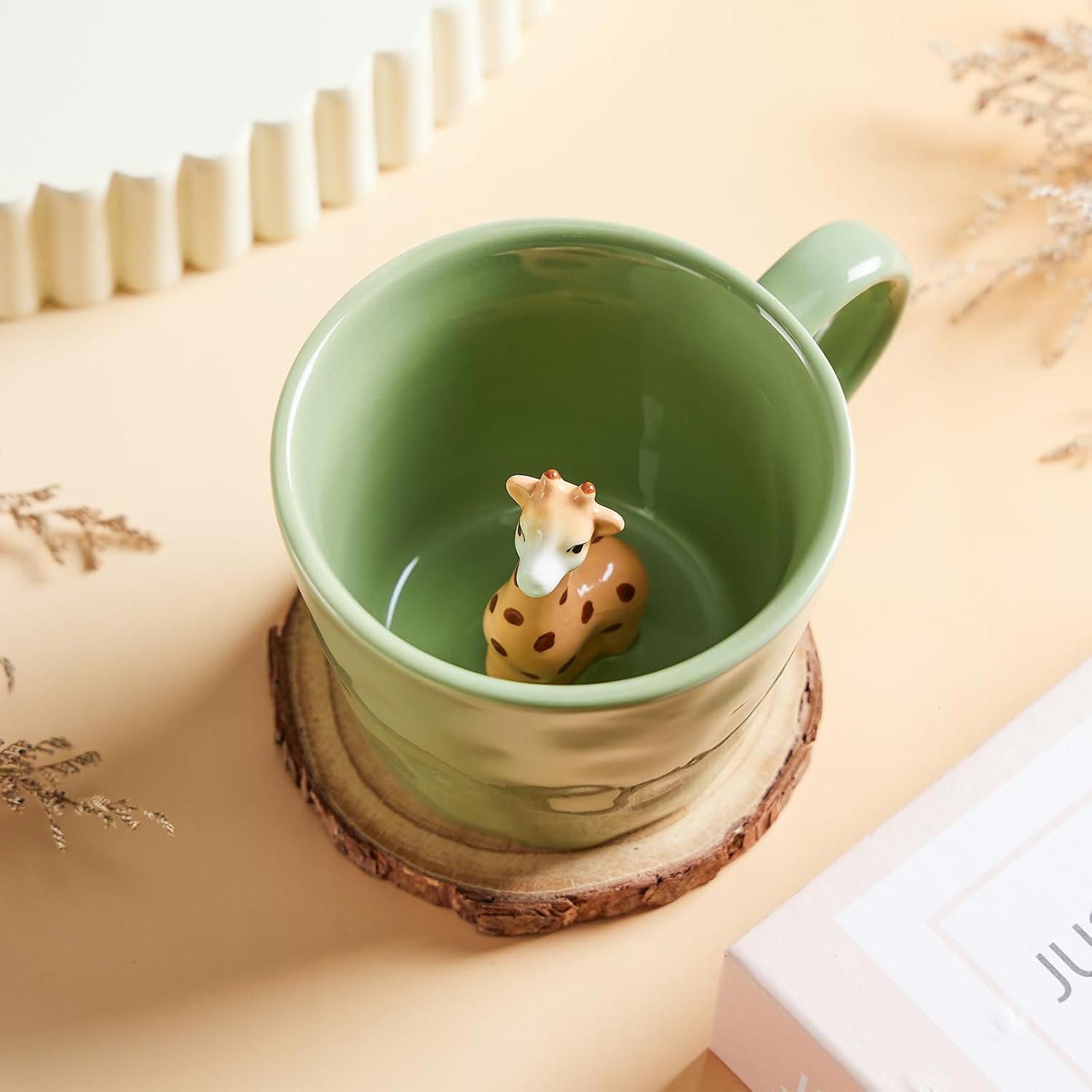 Керамична чаша с 3D животно вътре, 360 мл, ръчно изработена чаша с анимационна фигурка, сладка чаша за кафе с интересен дизайн, подарък за рожден ден за любителите на кафе и млечен чай (жираф)