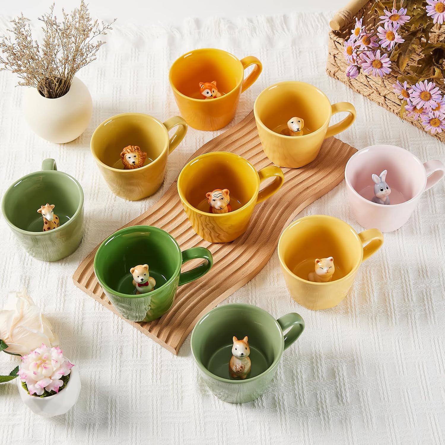 • Ръчно рисуван, уникален дизайн: Животните в чашата са ръчно рисувани, всяка чаша е уникална, а на дъното на чашата е скрита сладка катеричка, която бавно се разкрива при пиене.