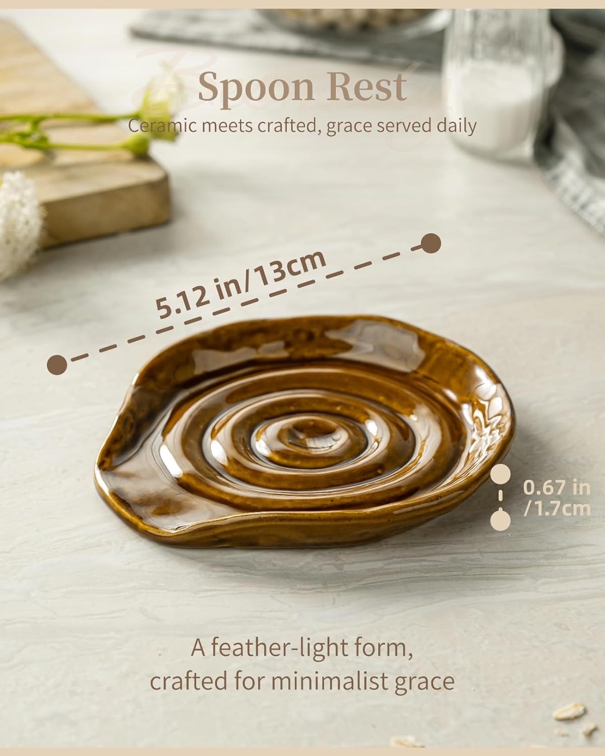 • Вашият многофункционален кухненски помощник: Повече от просто поставка за лъжици – тя предотвратява петна по работния плот, поддържа приборите организирани по време на готвене или служи като елегантна чиния за сервиране на закуски, предястия, десерти или дипове на партита.