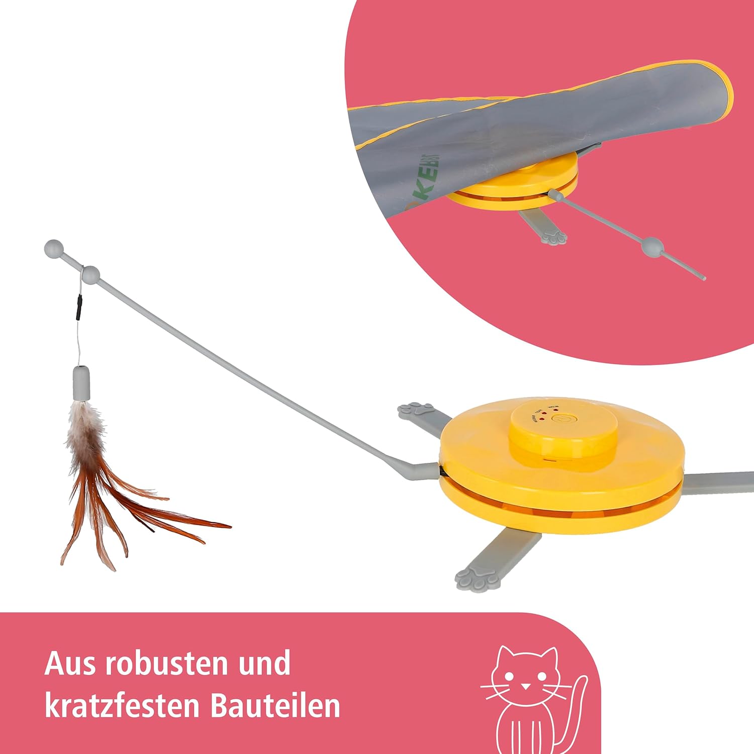 • Разнообразна игра: Kerbl Pet Catch the TailFeather предлага на вашата котка не само един, а два вълнуващи начина за игра - въртяща се пръчка под килим или завладяващо въртящо се перце.