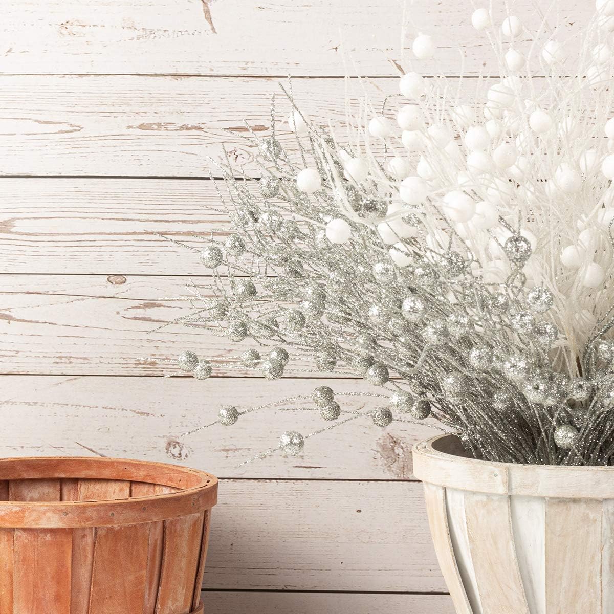 KI Store Пакет от 20 декоративни клонки Бели коледни клонки Изкуствена коледна клонка 45 см с брокат Клонки за занаяти Декоративна клонка Стъбло Имел за коледна украса (20, бели)