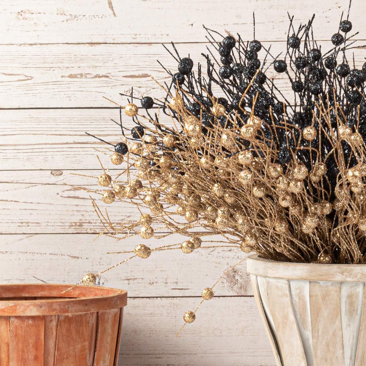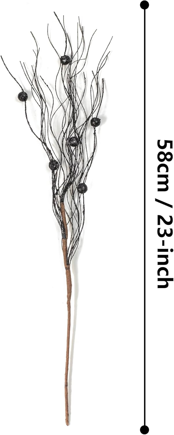 KI Store Пакет от 20 декоративни клонки Черни коледни клонки Изкуствена коледна клонка 45 см с брокат Клончета за занаяти Декоративна клонка Стъбло Имел за коледна украса
