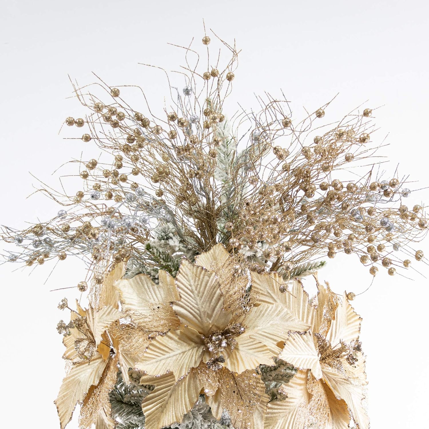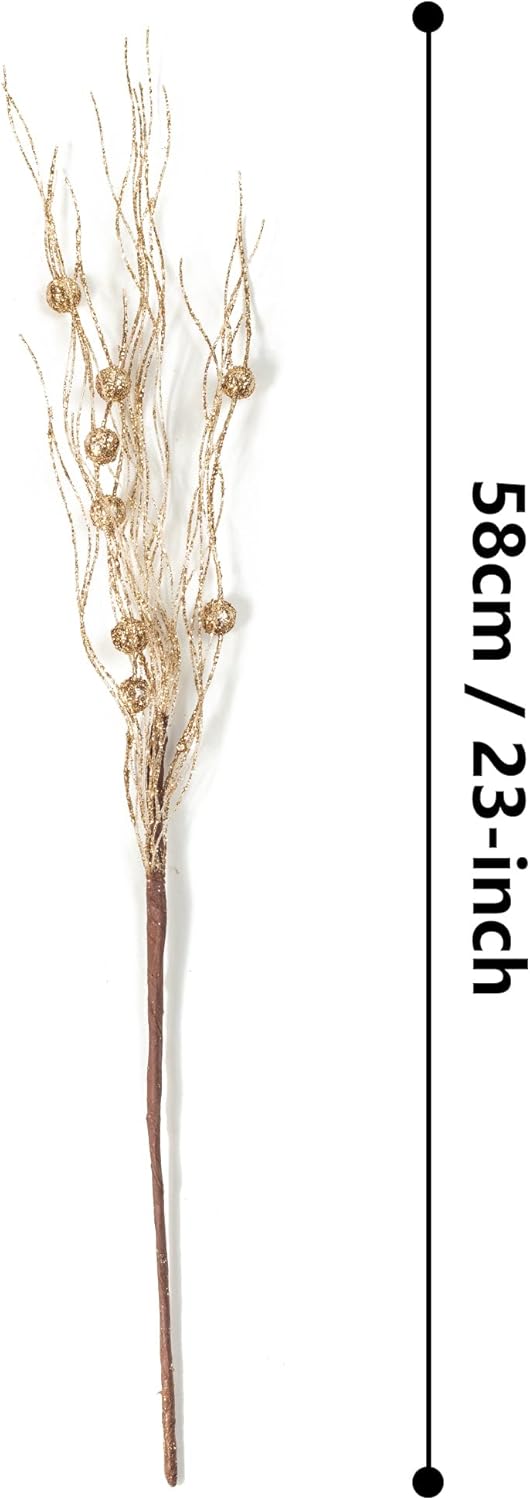 KI Store Пакет от 20 декоративни клонки Коледни клонки с цвят на шампанско Изкуствена коледна клонка 45 см с брокат Клонки за занаяти Декоративна клонка Стъбло Имел за коледна украса