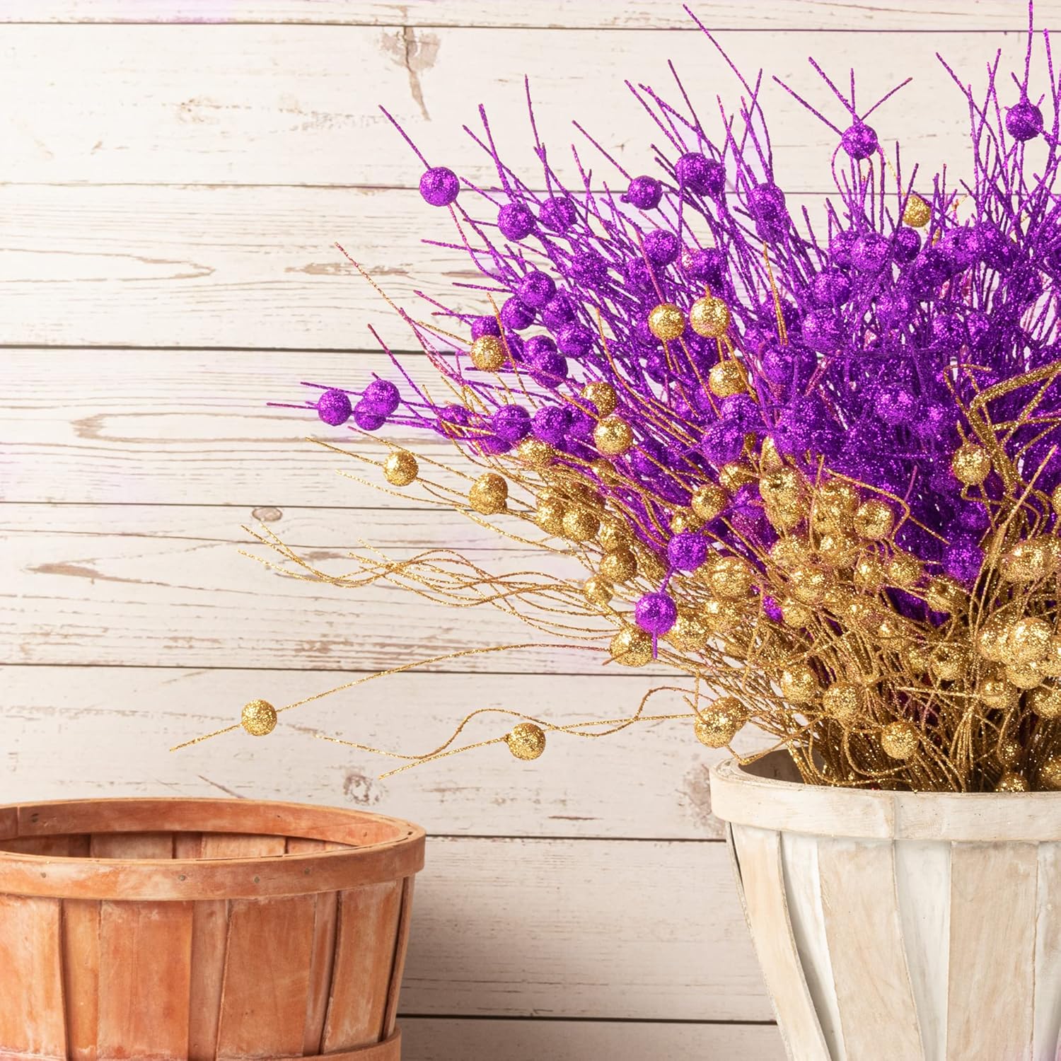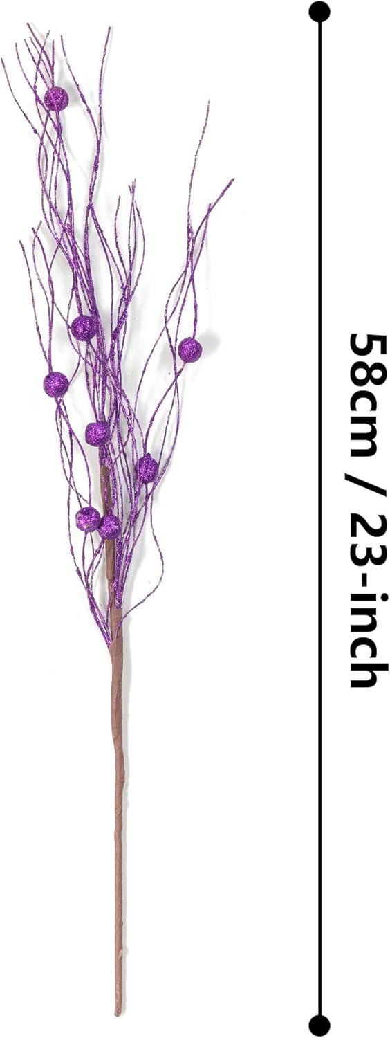 KI Store Пакет от 20 декоративни клонки Лилави коледни клонки Изкуствена коледна клонка 45 см с брокат Клонки за занаяти Декоративна клонка Стъбло Имел за коледна украса