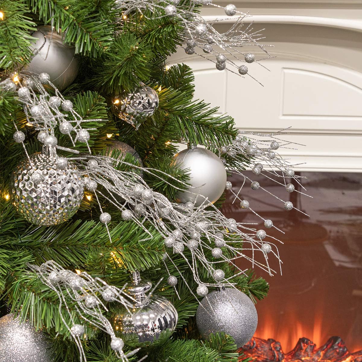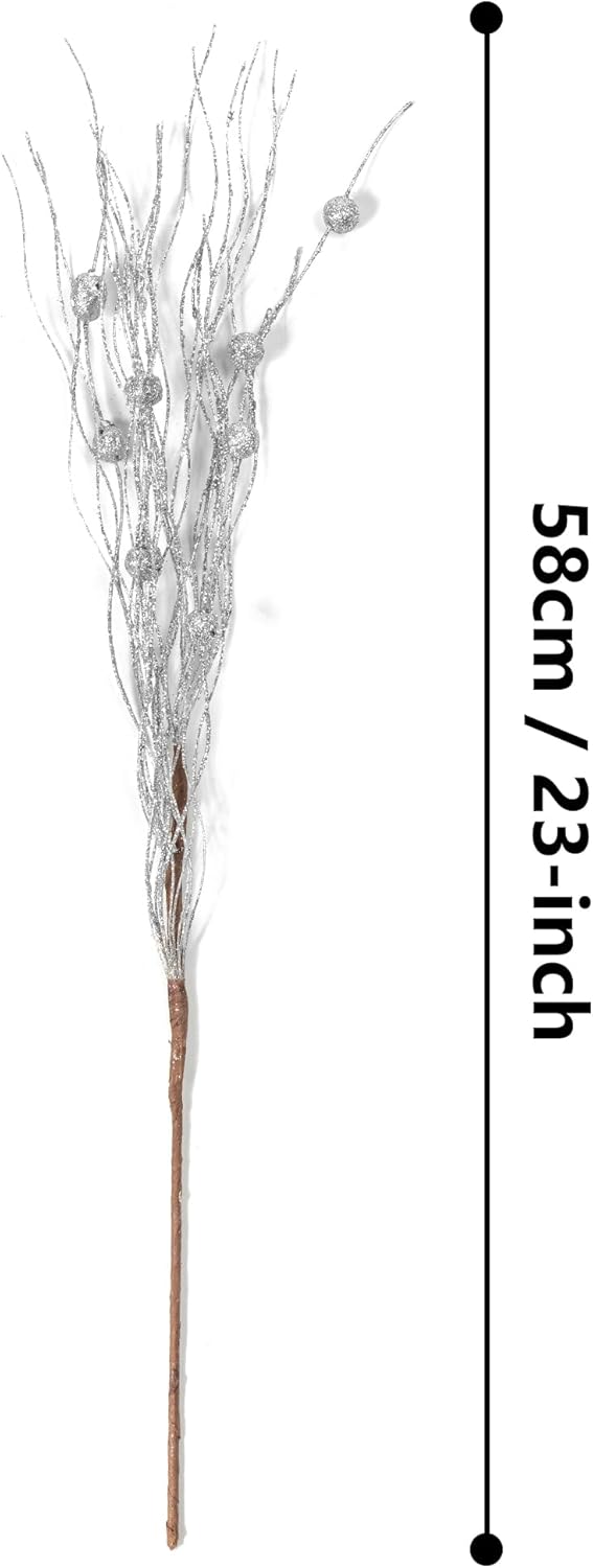 KI Store Пакет от 20 декоративни клонки Сребърни коледни клонки Изкуствена коледна клонка 45 см с брокат Клонки за занаяти Декоративна клонка Стъбло Имел за коледна украса